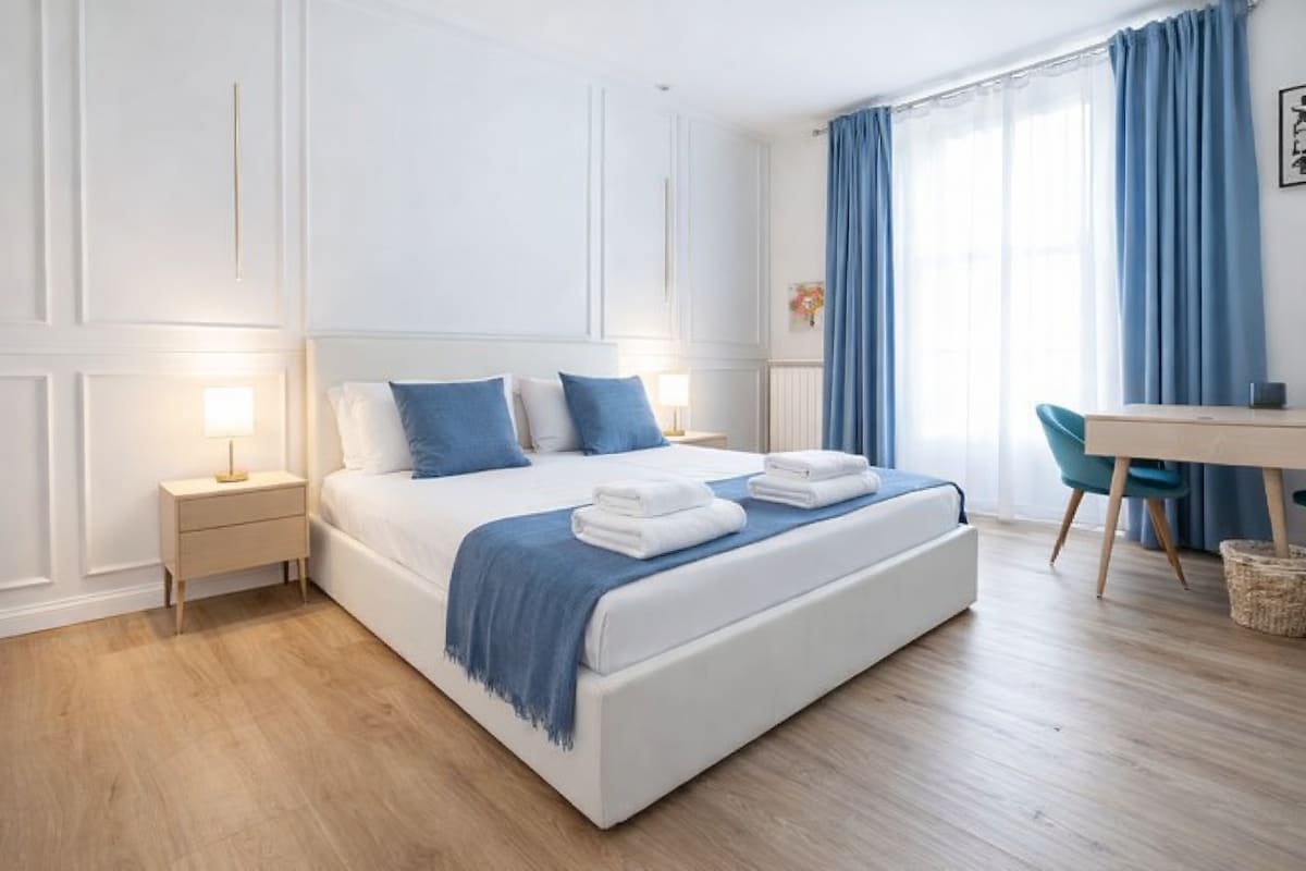 在這間位於市中心的 70 平方公尺寬敞兩房公寓中享受時尚假期,步行 3 分鐘即可抵達 M2 和 M3 地鐵站。 最近翻新的公寓,位於一座著名的自由風格建築中,距離中央車站僅幾步之遙,方便且適合任何類型的需求,配備了各種舒適設施,如2臺智慧電視、Wi-Fi、空調、洗衣機、洗碗機、Nespresso和設備齊全的廚房…… 您可以隨時自助入住。