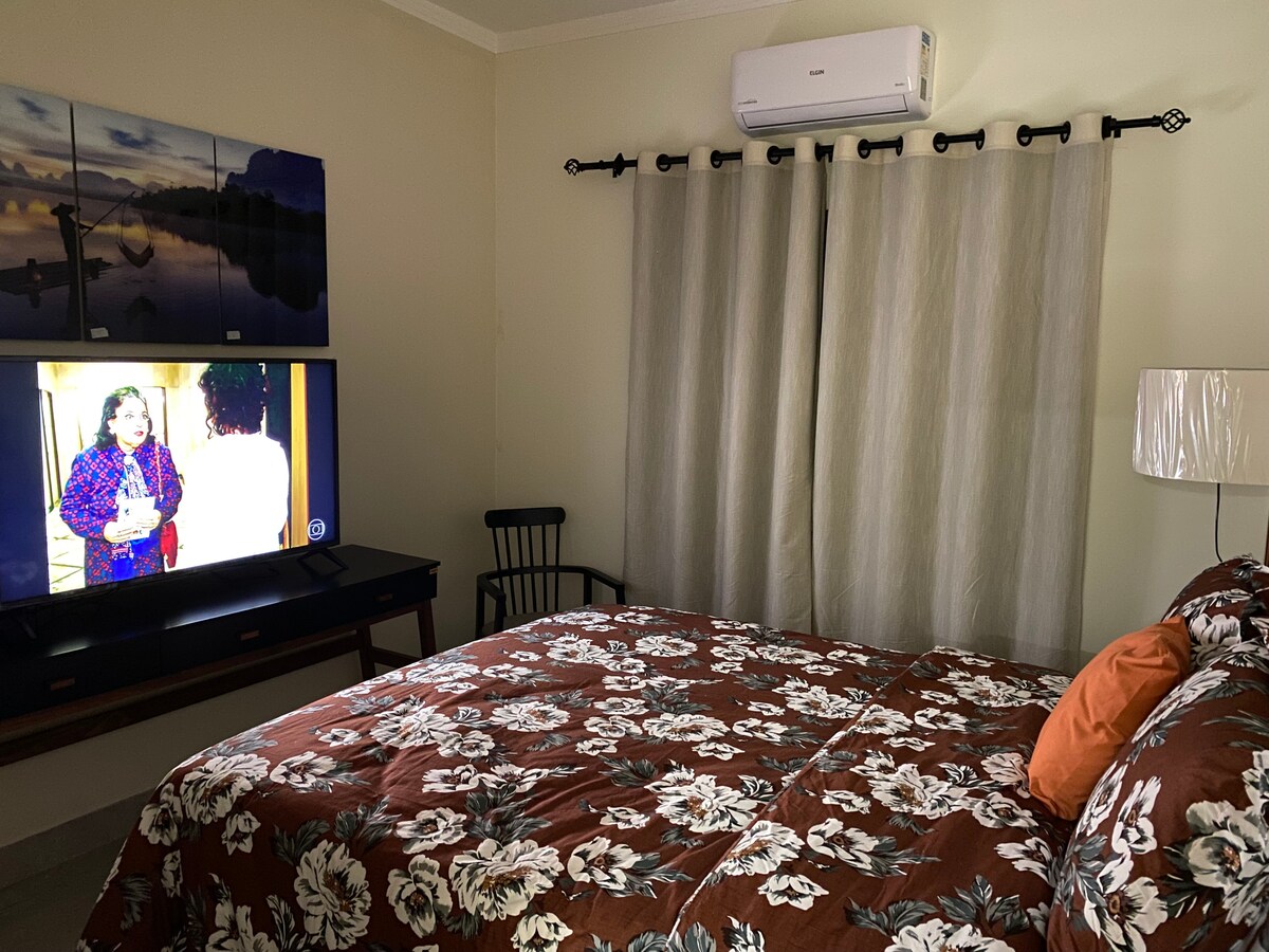 -這是一間後屋,後院有大門,以確保寵物的安全。 -燒烤區, -淋浴間; -車庫門到車入口的高度為2.05米,可容納3輛車; -距離瓜伊烏巴海灘200米; -靠近市場、餐廳和夜店; -房屋電壓110v和220v。 臥室1 -天花板和地板風扇、1張雙人床、1張上下鋪、1張嬰兒床。 睡房2 -天花板和地板風扇、2張碌架床、2張扶手椅、1台智能電視和Wi-Fi 臥室3 -天花板風扇、1張雙人床。
