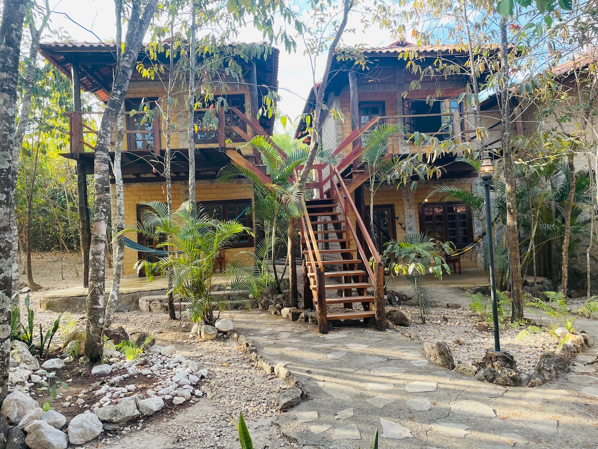 Terra Booma小屋以生態建築建造,提供舒適和諧的方式與森林連接。 醒來後,你會置身一個露天畫廊,欣賞靈感來自巴西野生動物的藝術品。 小屋設有私人浴室(從陽台進入)、冷氣和吊床。 如有需要,可提供早餐。 共用廚房從上午11: 00開始提供。房客可以前往瀑布、河流和令人驚嘆的寺廟,在大自然中沉思和放鬆