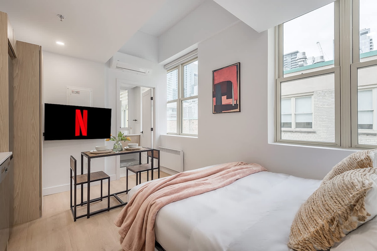 Chic 1-bedroom apartment in the heart of downtown Montreal! Just steps from vibrant Sainte-Catherine Street shops, restaurants, and nightlife at your doorstep. Modern, cozy, and perfect for work or relaxation. Walk to Concordia, museums, and metro. Experience Montreal in style and comfort!