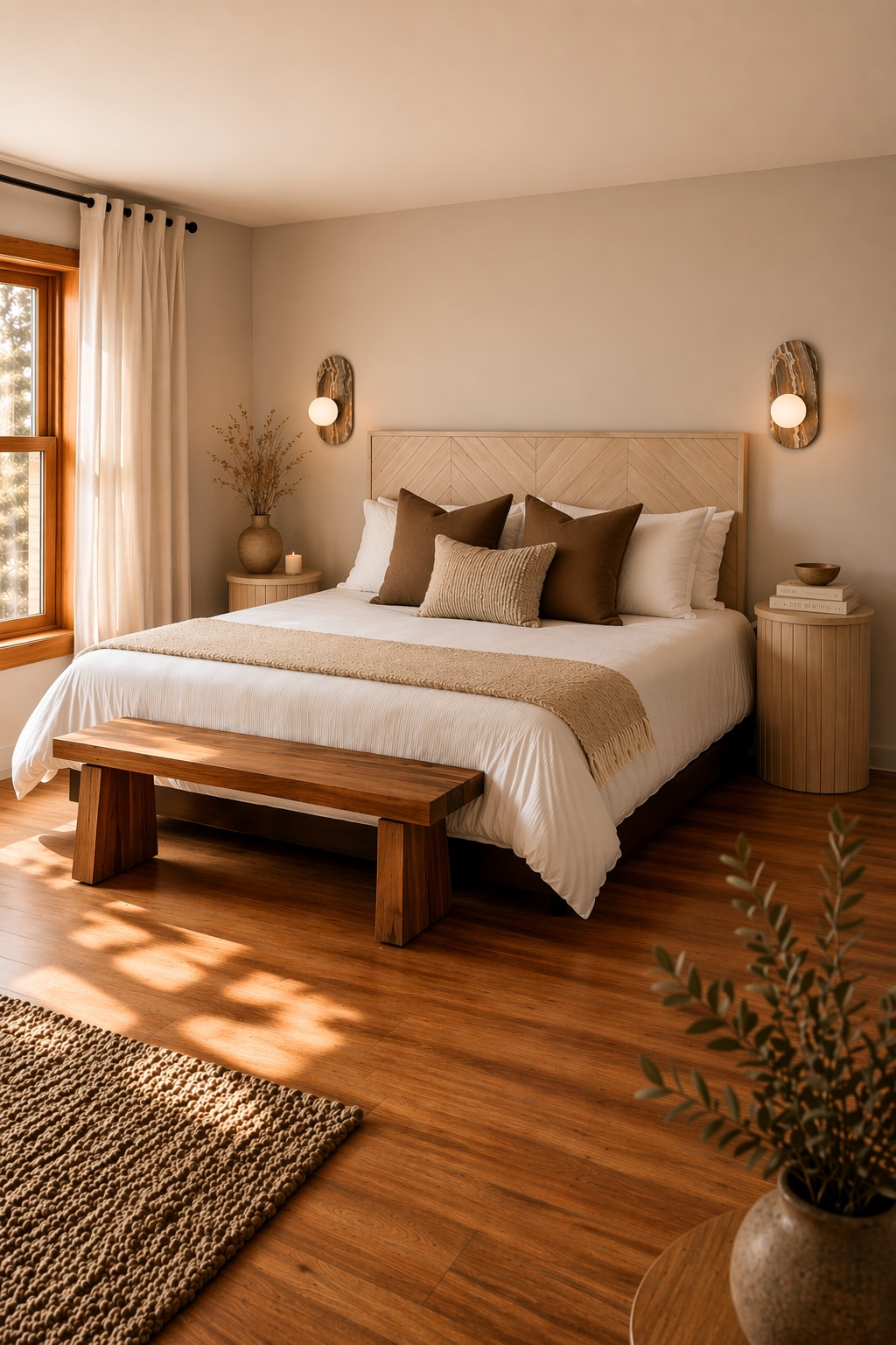 CHAMBRE EN RÉNOVATION. Suite à un incendie, le Boho Boutique-Hôberge se refait une beauté. Les images de la chambre et du coin détente de l'espace publique sont générés par IA pour vous donner une idée de ce qui s'en vient!