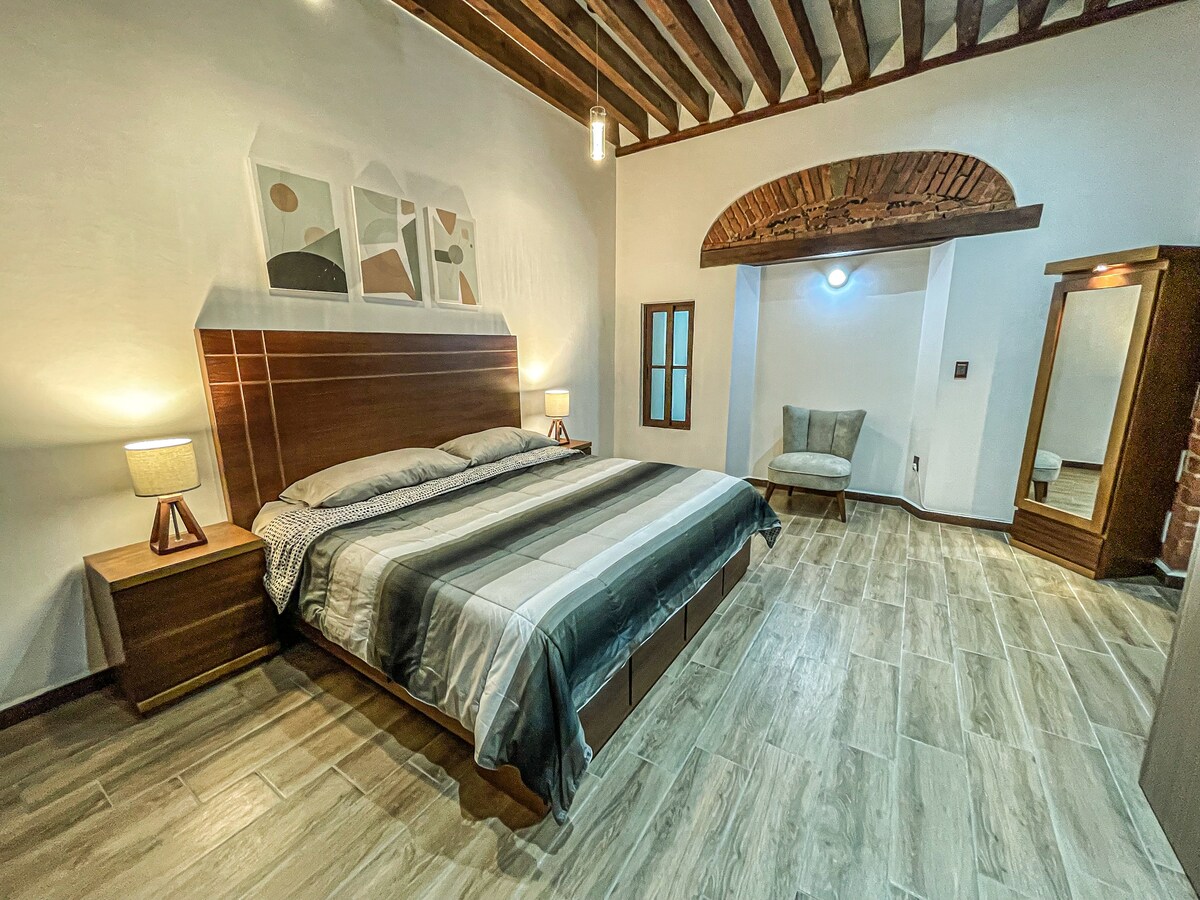 這是一座新翻修的十七世紀大宅,復古風格與現代感兼具,讓您享受愉快的住宿體驗。我們位於墨西哥城歷史中心的心臟地帶,距離大教堂和憲法廣場僅兩個街區。 每間客房均配有小廚房、電磁爐、迷你冰箱、烤箱、咖啡機、果汁機和基本廚具,以及毛巾和烘乾機。 如需熨斗和熨衣板,請向我們索取。