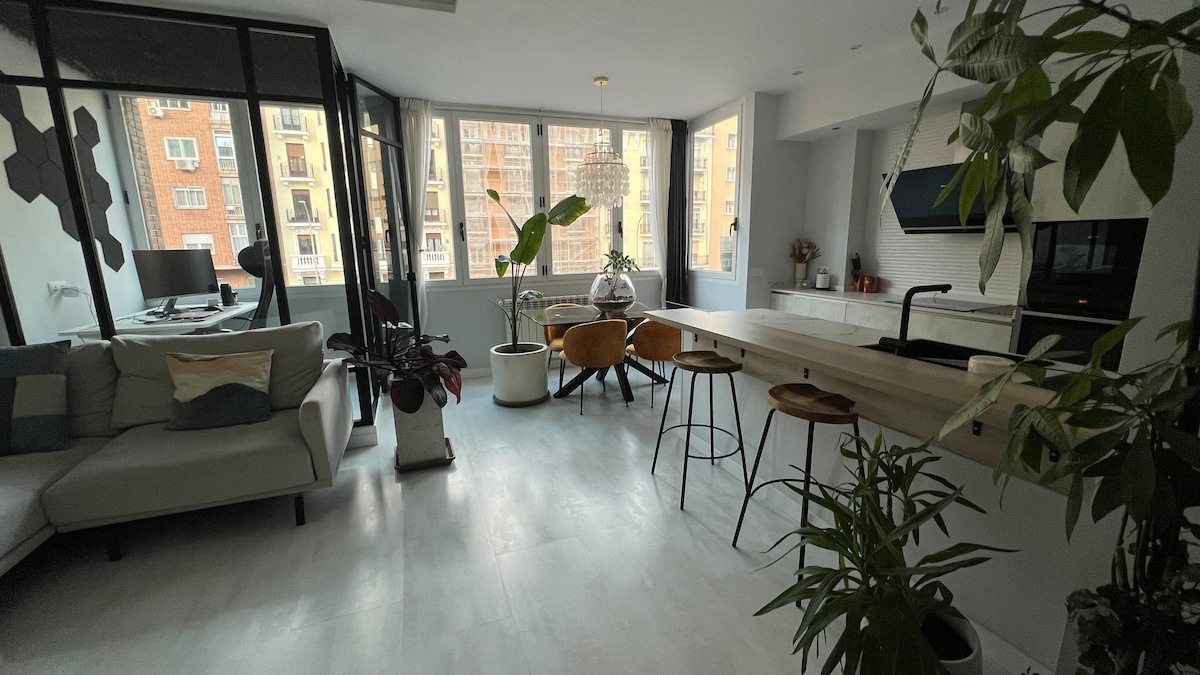 'Diviértete con toda la familia en este alojamiento con estilo'... Amplio apartamento recién reformado por mi, la propietaria; usé materiales actuales y cálidos, cuidando los detalles para que te sientas como en casa. Se accede directamente desde la calle, en planta baja, mediante un código que te permite el Check-in tan flexible como necesites. Tiene una superficie de 60 m², con techos altos, en Chamberí al lado del intercambiador de Moncloa.