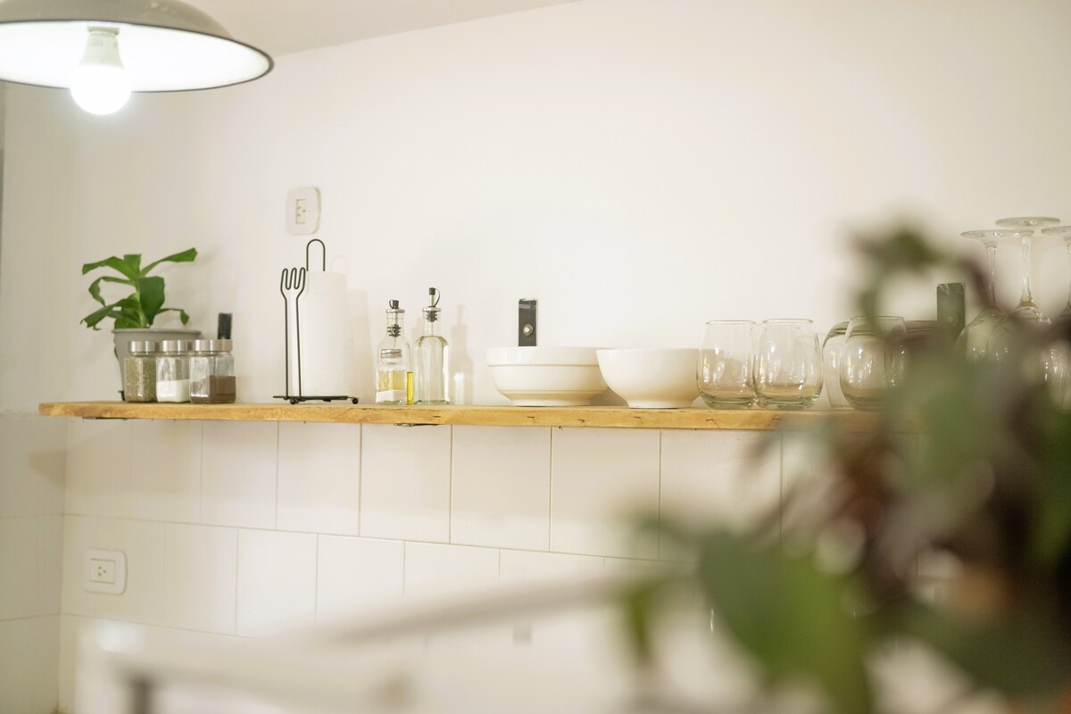 在配備所有設備的家中享受Salta la Linda。 寬敞的單人房間(單間公寓) ,配有露臺陽臺,四周綠意盎然。 無與倫比的地理位置:安靜的區域,距離各種景點僅幾步之遙。 大牀(兩張單人牀) +扶手椅牀。 我們有電磁廚房、Nespresso咖啡機、洗衣機、智慧電視、吹風機。