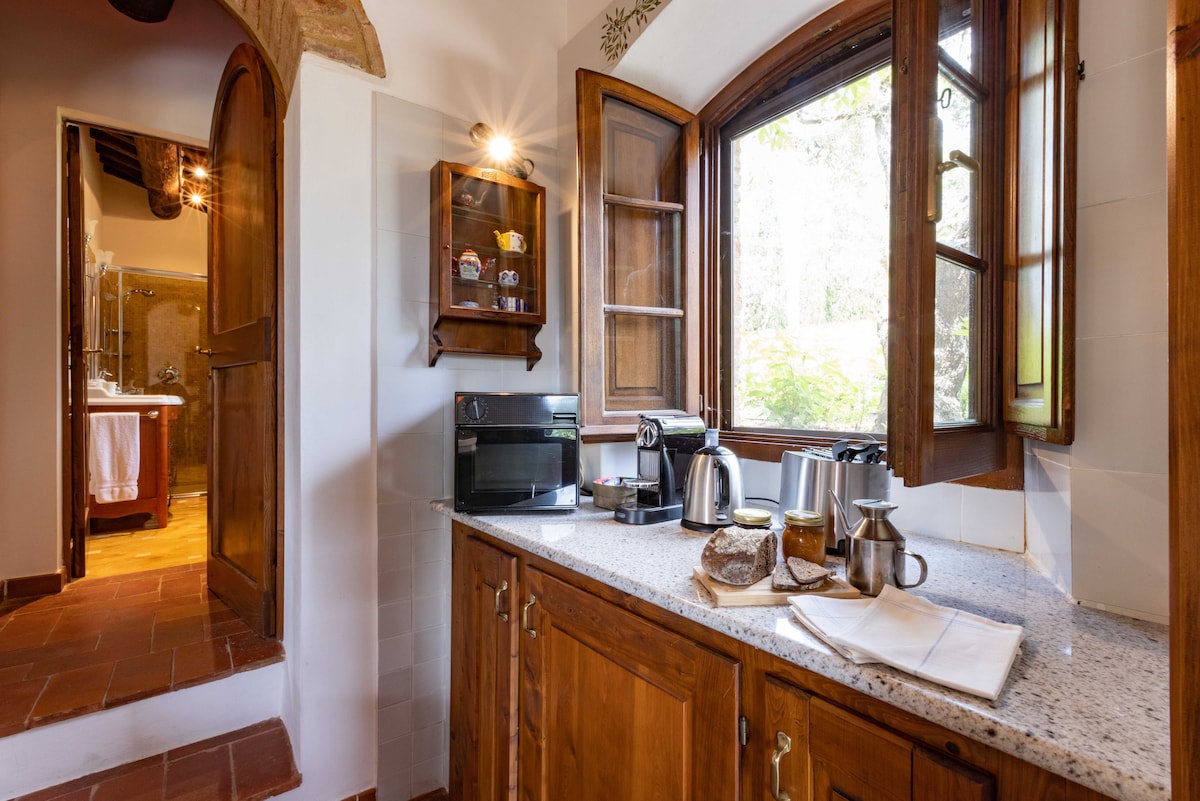 在托斯卡尼鄉村中心度假,入住這間舒適的石屋,配有赤陶地板和實心橡木的橫樑天花板,配有作者的畫作,配備所有舒適設施。 在大型無邊際泳池(18公尺X 9公尺,5月1日至10月15日開放,僅供石屋房客使用)中游泳,或在涼廊下的扶手椅上放鬆,在葡萄園、橄欖林、樹林和中世紀村莊的起伏山丘前品嚐一杯基安蒂葡萄酒。