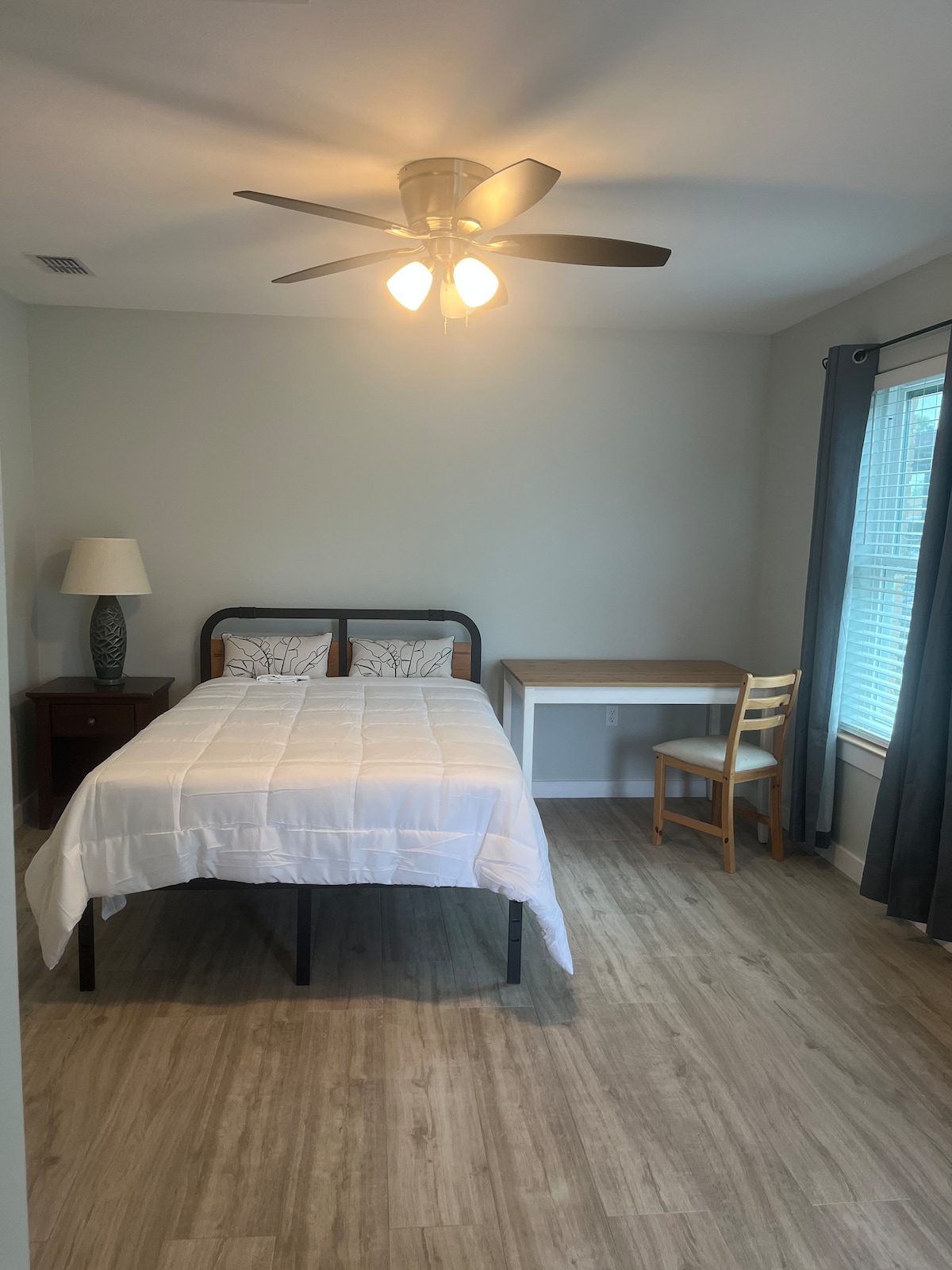 獨立的單間公寓客用套房,與主屋分開,提供飯店式的舒適度。配有一張雙人床(可睡2人)、全套獨立浴室和安裝的投影機(使用您自己的登入)。位於房源前面,交通方便。額外房客可以使用沙發。在前門尋找Airbnb標籤。舒適、方便,非常適合來趟輕旅行或長期住宿!