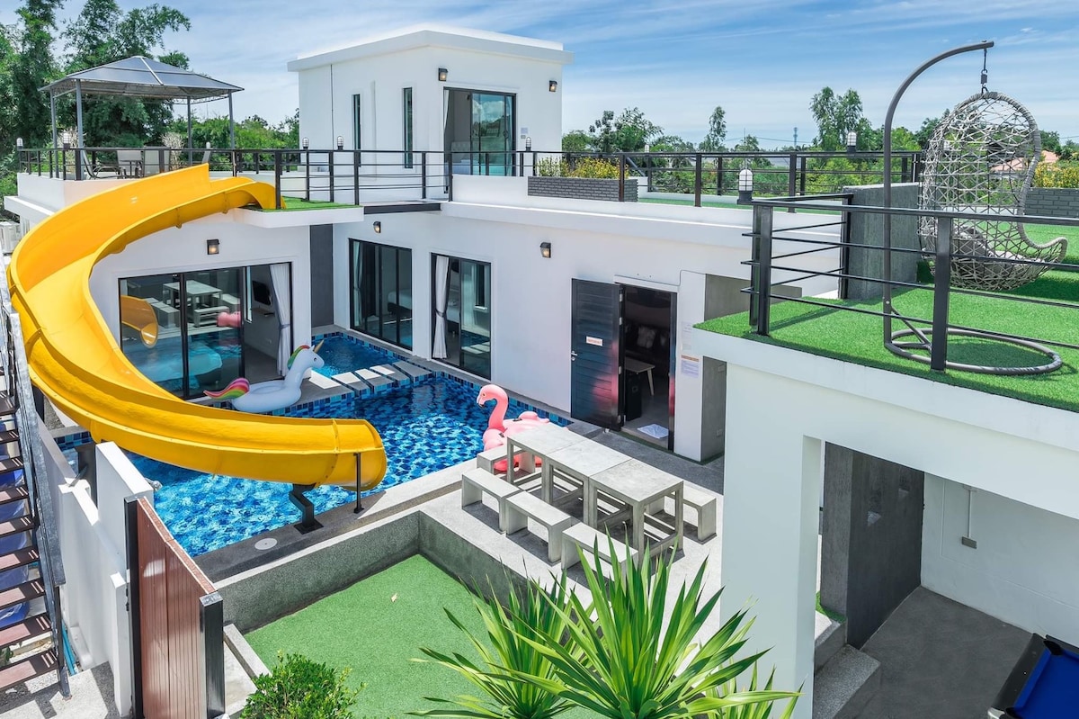 提供往返华欣机场/巴士站/火车站的免费接送服务。我们拥有超过9700条评价,其中92%为五星好评,确保提供一流服务。这栋橙风别墅泳池别墅 (Orange Breeze Casa Pool Villa) 是微风私密私人泳池别墅 (Breeze Privacy Private Pool Villa) 的一部分,距离华欣七岩海滩 (Cha-Am beach) 仅5公里。别墅设有3间宽敞的卧室——其中2间带独立卫浴,1间共用浴室位于起居区。别墅配备7米长(1.5米深)的游泳池,并设有儿童滑梯,供您的孩子尽情玩耍。