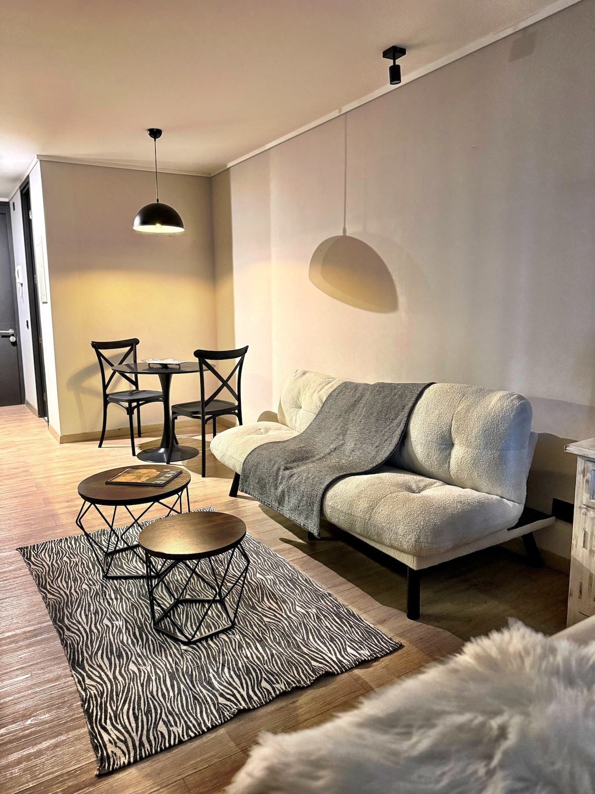 探索現代設計與前哥倫布時期的根源和馬普切文化相融合的體驗。 這套主題公寓將現代線條與前西班牙時代陶瓷複製品和馬普切織品完美融合,為空間注入歷史氣息和溫暖感。 步行 25 分鐘即可抵達 Mall Alto Las Condes 購物中心,提供全景泳池和健身室,並包括私人泊車位。 公寓不適合兒童入住。 如果你攜帶嬰兒床,便可以與嬰兒同住。 距離 Alto las Condes 和 Parque Arauco 商場僅幾分鐘路程。不允許接待訪客或舉辦派對。