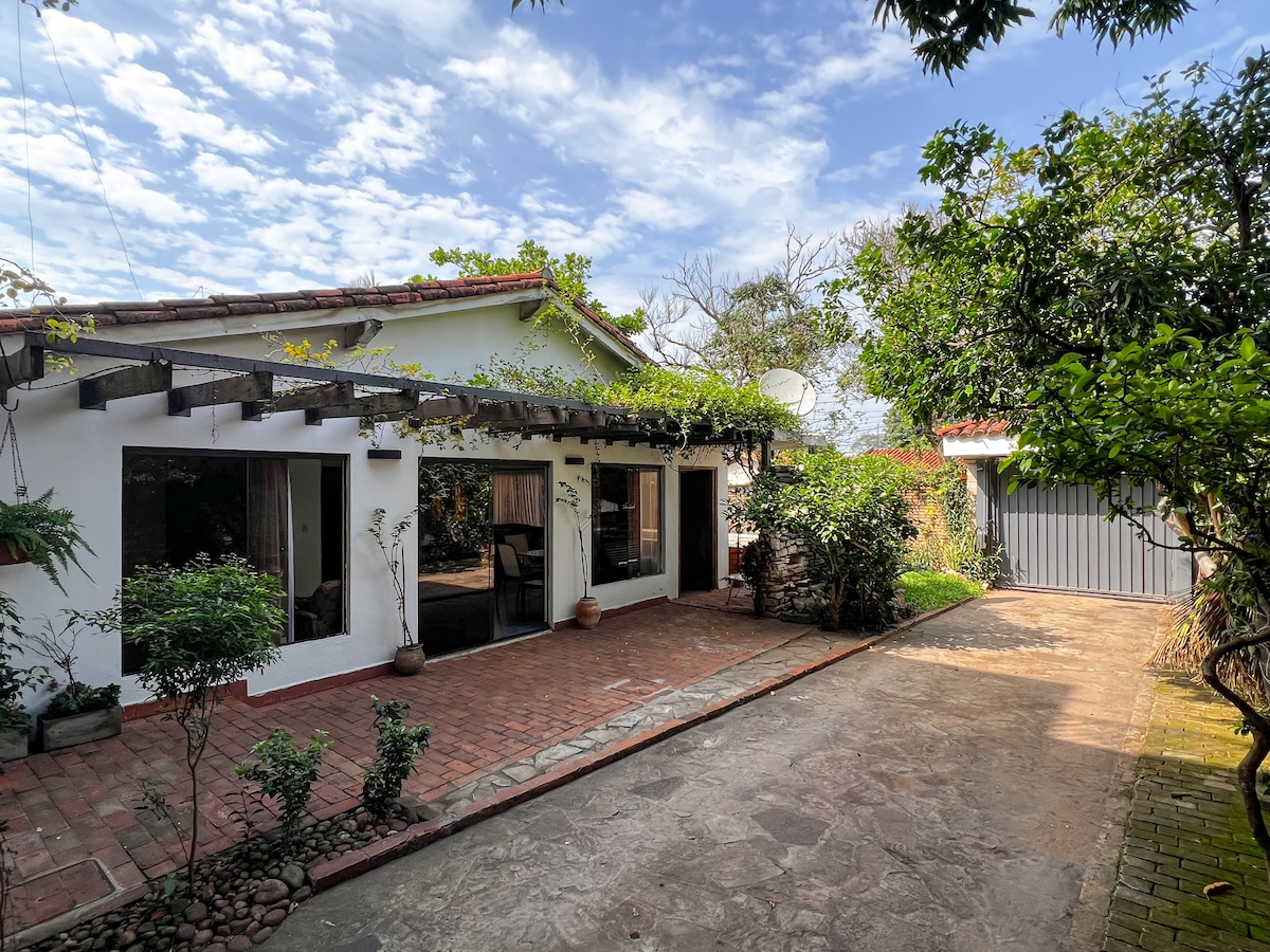 Ambiente vintage, cómodo, privado, cuenta con jardin interno y externo, estacionamiento, las zonas son totalmente independientes a la casa. wifi 5G fibra optica, Cuenta también con servicio de transporte de omnibus frente a la casa. (Linea 96,21, 10) zona asfáltica, a 5 minutos del shopping Multiplaza, ARENAS, los principales shopping de la ciudad a pocos kms, : GALERIA; MCAL LOPEZ; DEL SOL...... Para el descanzo de la noche el lugar es acogedor, tranquilo,. y disfrutar del patio tambien.