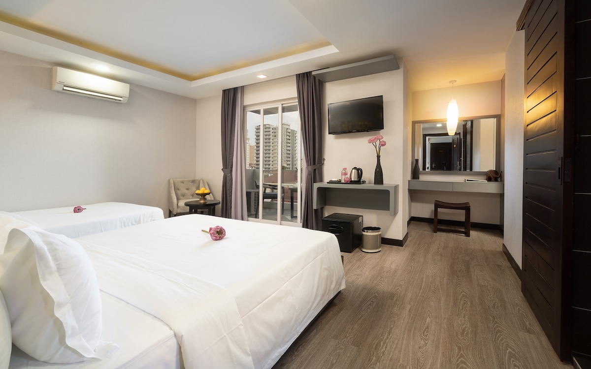 Recently renovate, Junior Suit Room offers comfort same as 5 stars hotel with the a separated bathroom. Junior Suit Room is a spacious size room (50 m²/538 ft²), offering city view.