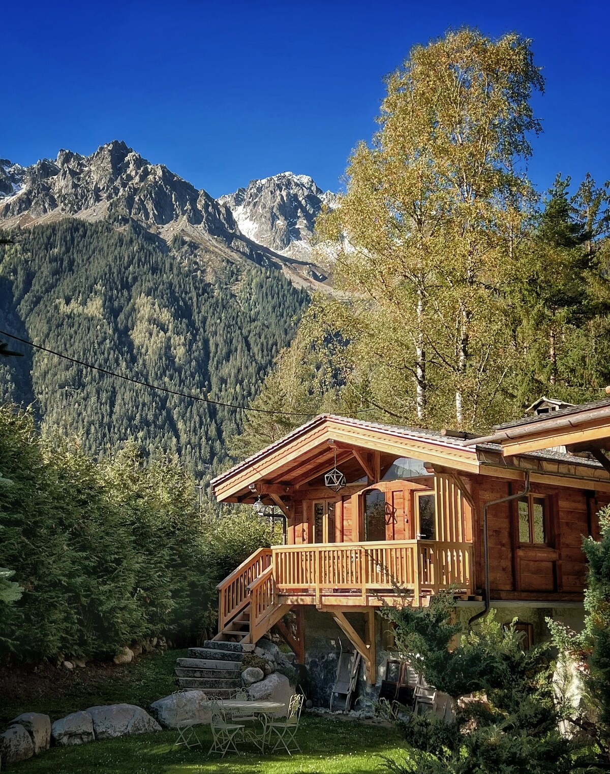 在巨大的石製壁爐中添加木材,然後在質樸的木製沙發上放鬆身心。透過窗戶欣賞周圍的高山森林,以及一座真正的小木屋。從山坡上回來,在小木屋別緻的浴室裡的豪華的三溫暖中放鬆身心。 25 平方公尺的臥室,配有一張雙人床、儲物空間、正宗衣櫃。 溫馨寬敞的客廳,配有雙層窗戶,可俯瞰白朗峰和壁爐。還有一張可轉換成 2 張單人床的長凳沙發。 實用且設備齊全的廚房。 一間花崗岩浴室,配有淋浴間和 3 人桑拿房。 面向森林和小溪的露台(經常有鹿來訪 - 見照片),有噴泉和白朗峰山脈的壯麗景色。 小木屋是一個獨立的建築,完全可供房客使用。 露臺和周圍環境也是如此(小河、私人橋樑和通往森林的通道)。 如有任何問題,請隨時聯絡我們。 在庫波(Coupeau)村:位於Les Houches上方森林中的正宗小木屋,可欣賞白朗峰山脈的壯麗景色。在小激流旁邊,有鹿 距離Les Houches 5 分鐘車程,距離Chamonix 10 分鐘車程,距離日內瓦 1 小時車程。 從公路前往小屋很方便。距離Les Houches 2公里,距離Chamonix 10公里。小屋後面就有停車位 一座全面翻新的舊小木屋。 配備所有現代舒適設施(包括可容納 3 人的桑拿房)和頂級裝飾。 白朗峰山脈的獨特景觀。 小屋位於Les Houches上方的森林中的Coupeau村,可欣賞Mont Blanc的壯麗景色。開車5分鐘即可抵達Les Houches ,開車10分鐘即可抵達Chamonix ,開車1小時即可抵達日內瓦。