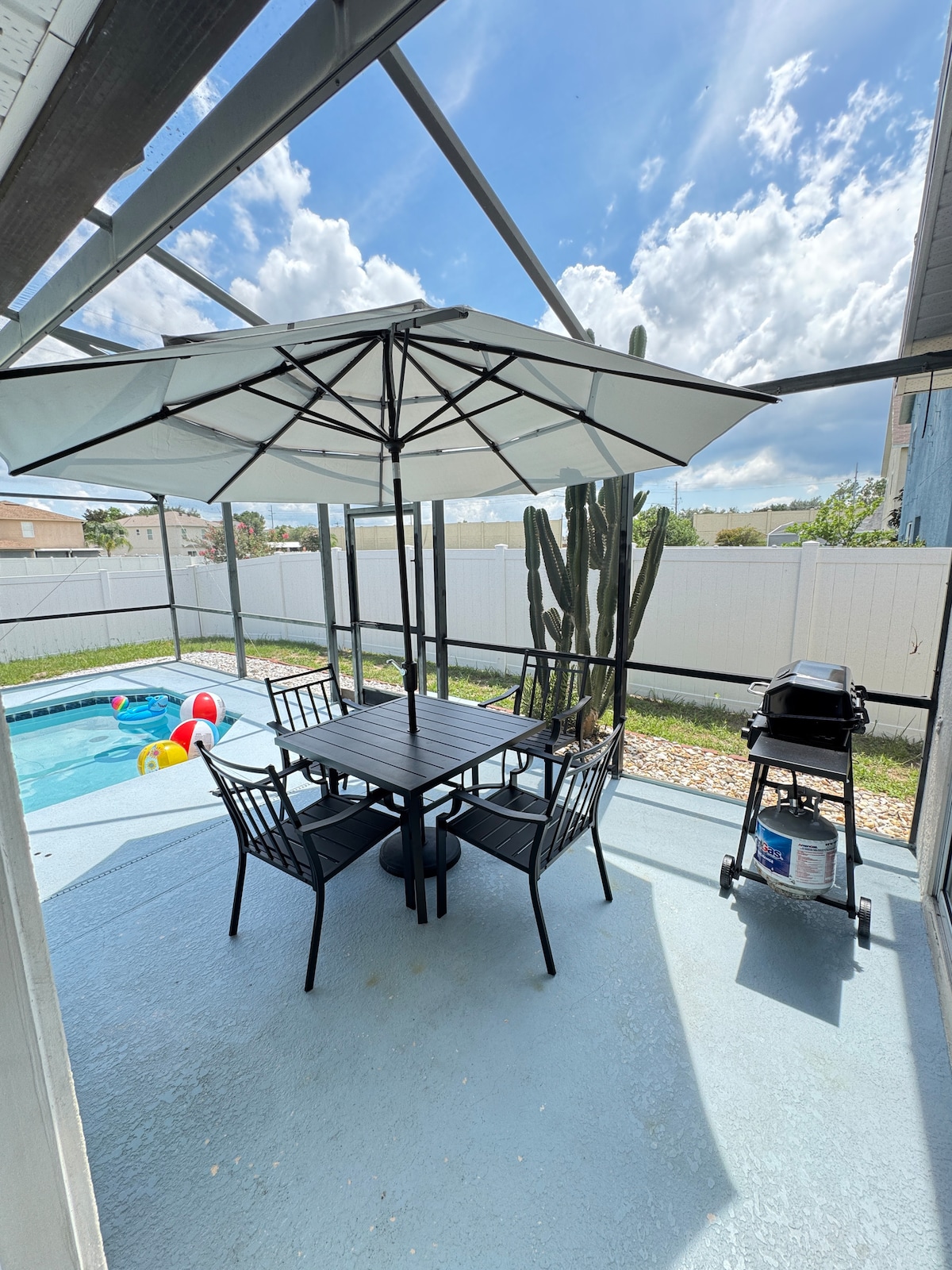 Relax with the whole family at this peaceful house in Davenport, just miles from Disney World Orlando Florida Theme Parks, Universal Studios, Sea World and Legoland. Enjoy our PRIVATE POOL with optional WATER HEATER. 3 bedrooms, 2 bathrooms, fully equipped kitchen, Smart TV's and strong Wi-Fi all around the house. Enjoy our Garage Games Room with Indoor Basketball and Ping-Pong Table. Close to ChampionsGate, Restaurants & Retail stores.