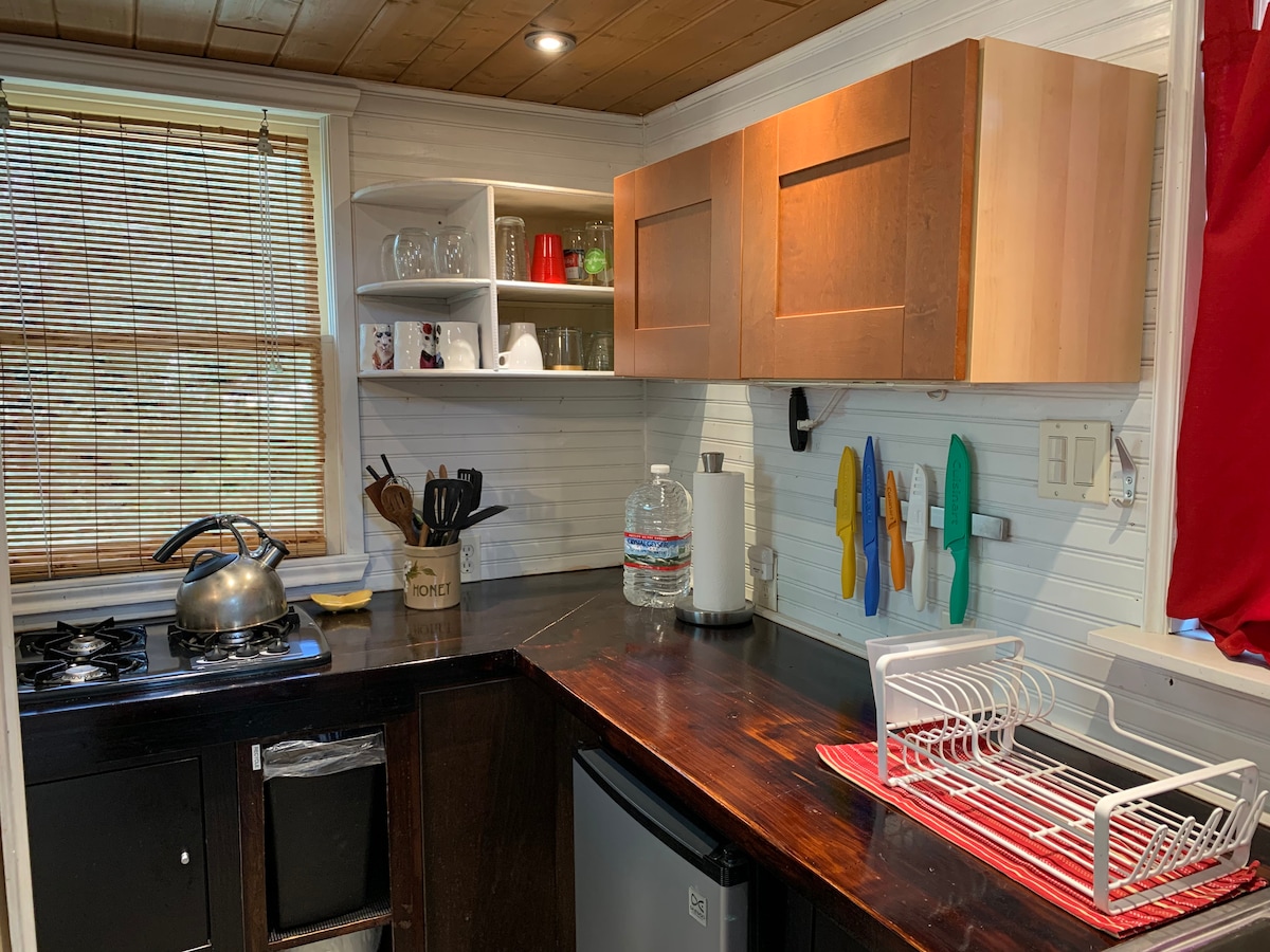 如同在 HGTV 上看到的!「My Tiny Cabin」是一棟288平方英尺的完整房屋,由CJ「Ceige」Taylor建造,作為簡化實驗,位於1.5英畝工作街區迷你農場的橡樹下。入住真正的迷你屋,同時參觀附近的Driftwood或Dripping Springs ,開車前往Austin或San Marcos ,或享受德州威士忌步道(Crowded Barrel、Fang & Feather )、婚禮場地(Chapel Dulcinea、Tuscan Hall )、巫師學院、Radha Madhav Dham等。
