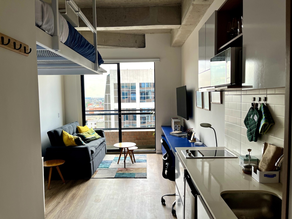 美麗的單間公寓,位於安靜的地方,靠近一切,距離天主教大學、哈維里亞納大學、國民大學、聖托馬斯大學等大學和瑪利和巴勒莫等診所僅幾分鐘路程。 距離 Transmilenio 車站兩個街區,靠近旅遊景點。 這間 Loft 提供您可能需要的所有便利設施,包括一間配有雙人床的臥室,可選配額外的沙發床,以及在家工作所需的所有便利設施,以及設備齊全的廚房。