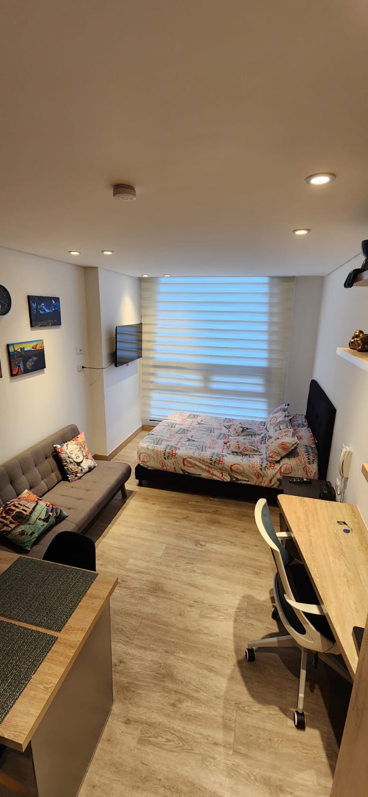 Located in the best area of Bogotá. ideal for business trips, leisure and small families that want to stay in a studio apartment. You will be in walking distance from three main shopping centers, top restaurants, gyms, supermarkets, bars, clubs, parks, coffe shops, hospitals and public trasnport stations in the city. This brand new studio apartament offers 24/7 doorman security a panoramic terrace on the building´s top floor, jacuzzi and front view to one of Bogota´s principal parks, el Virrey