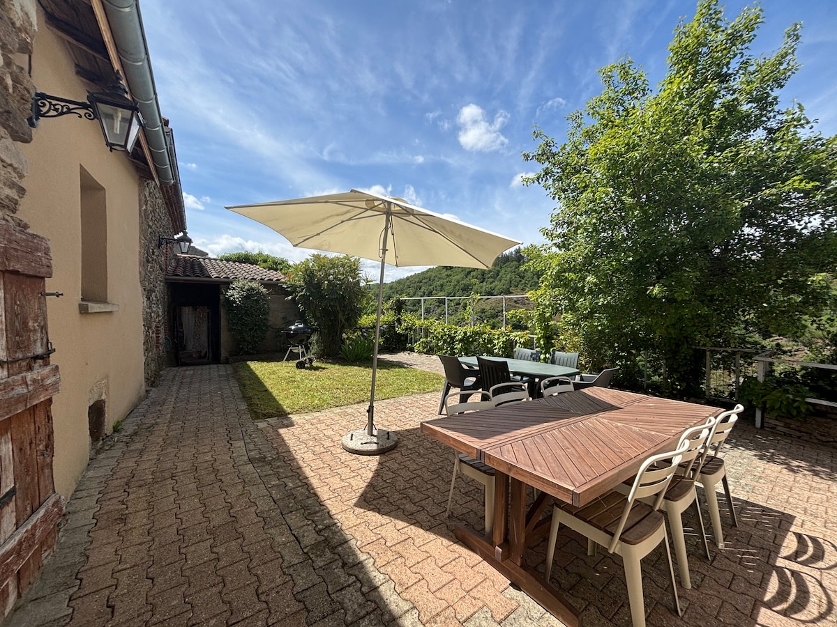 入住這個寬敞寧靜的空間,忘記您的煩惱。 最近翻新的迷人石屋,位於布拉薩克萊斯米內斯(Brassac Les Mines)鎮。 它有許多資產,其15平方米的大露台俯瞰1000平方米的平坦林地。 非常適合與隨行人員一起享受鄉村的寧靜。 可免費使用房子前面的公園。 靠近主要道路,交通方便,距離免費A75高速公路僅5分鐘路程。