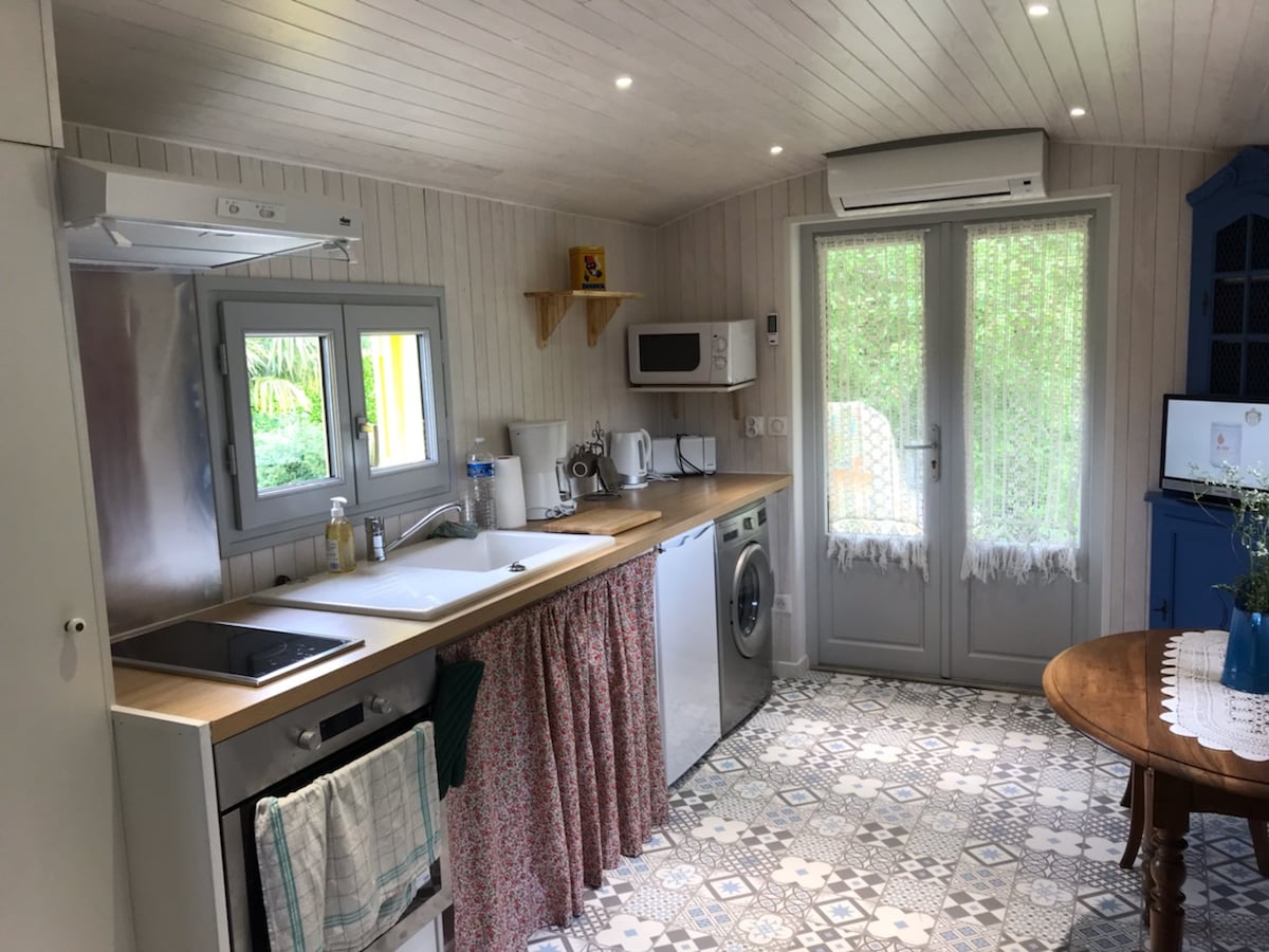 入住一輛經翻新的波希米亞風格拖車,位於夏朗德省一個村莊的安靜地區。 在附近的森林散步。 你有一間浴室,還有廁所和小廚房。