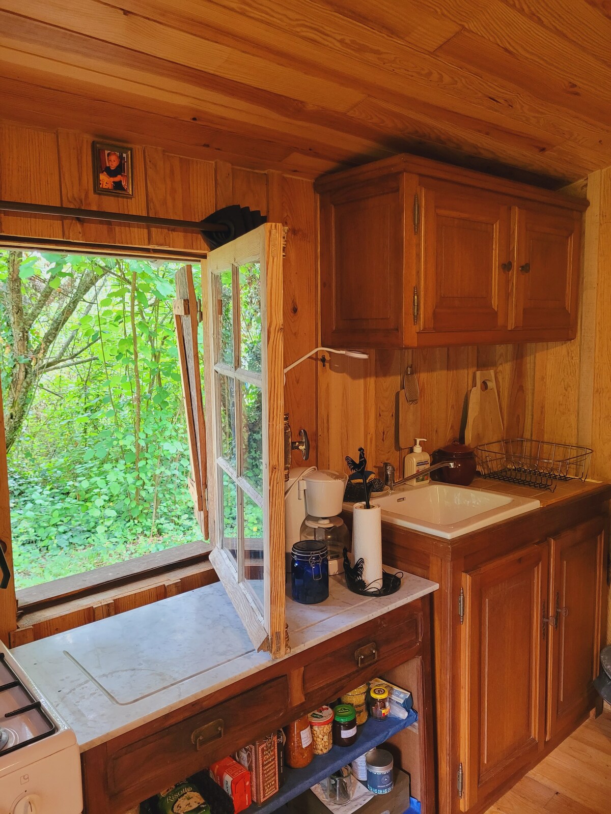小型鄉村小屋,位於森林邊緣,距離我們的房子50米。 一個簡單的地方,四周有樹木,鳥鳴聲聲不絕。 在這個獨特而寧靜的空間中放鬆身心。 非常適合與大自然和自己重新連接。 配備必需品,讓你享受寧靜的大自然住宿。 住宿由一間客房(單間公寓)組成,配有內置小廚房和儲物空間。 浴室配有淋浴間、洗手盆和乾式馬桶(入口在外面)