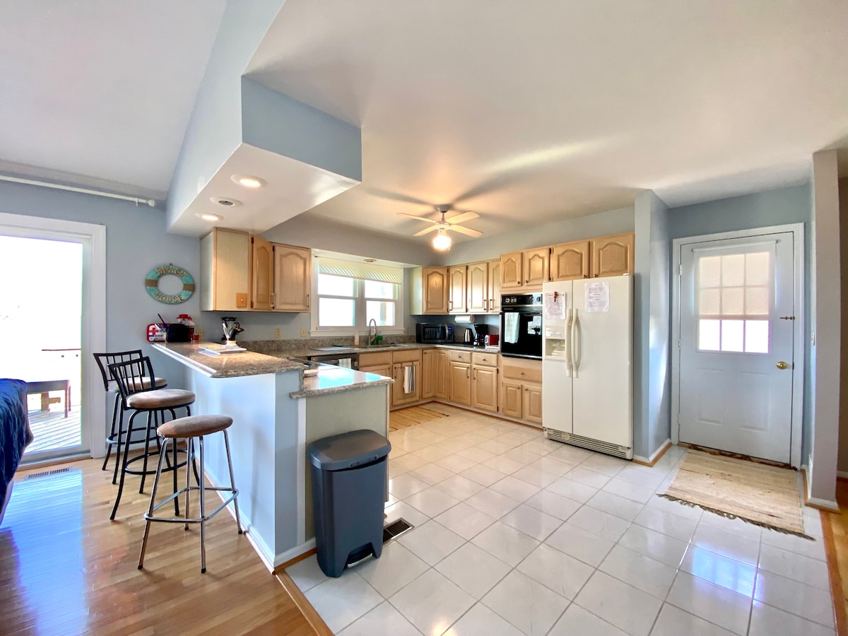 The River House位於Wicomico河畔,擁有私人沙灘,將成為您最喜愛的度假勝地! 這間5間臥室、3間浴室的房源設備齊全,擁有現代建築的所有便利設施(包括WiFi ) ,但保留了原始房源的復古魅力。 這塊超過1英畝的地塊非常私密,可欣賞壯麗的森林和水景。您可以在各個方向找到適合所有年齡層的樂趣!它有兩個底層床/浴室組合,以及一個非常適合孩子的睡眠閣樓!