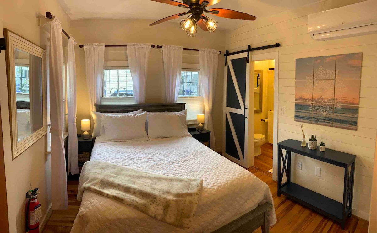 歡迎來到我們位於Wagener Terrace街區的翻新、設備精良的1間臥室公寓。您將有一張加大雙人床,全功能廚房配有基本烹飪用品。前面的專用車道通往私人庭院入口。 我們的公寓可步行前往Lowndes Grove和Hampton Park。我們距離「市中心」起點1.5英里。一般而言,停車不是問題,但很多人選擇Uber或Lyft或騎Lime自行車。 房東住在相連的主屋。