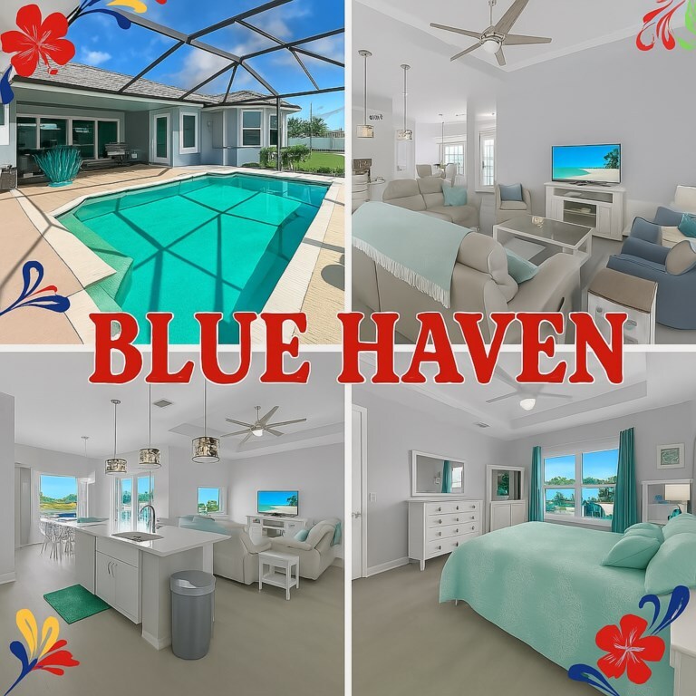 Your next retreat to Florida paradise should be Casa Blu with it's private pool and serene backyard. It's just minutes to area beaches, restaurants and parks. Let the stresses of daily life melt away as you float in the salt water pool, sipping margaritas, listening to Jimmy Buffett singing "It's Five O' Clock Somewhere" The single-floor layout, comfy bedrooms with private baths await. Fast WiFi, Smart TVs, and fully equipped kitchen. Everything's covered, from beach gear to a pack 'n play.