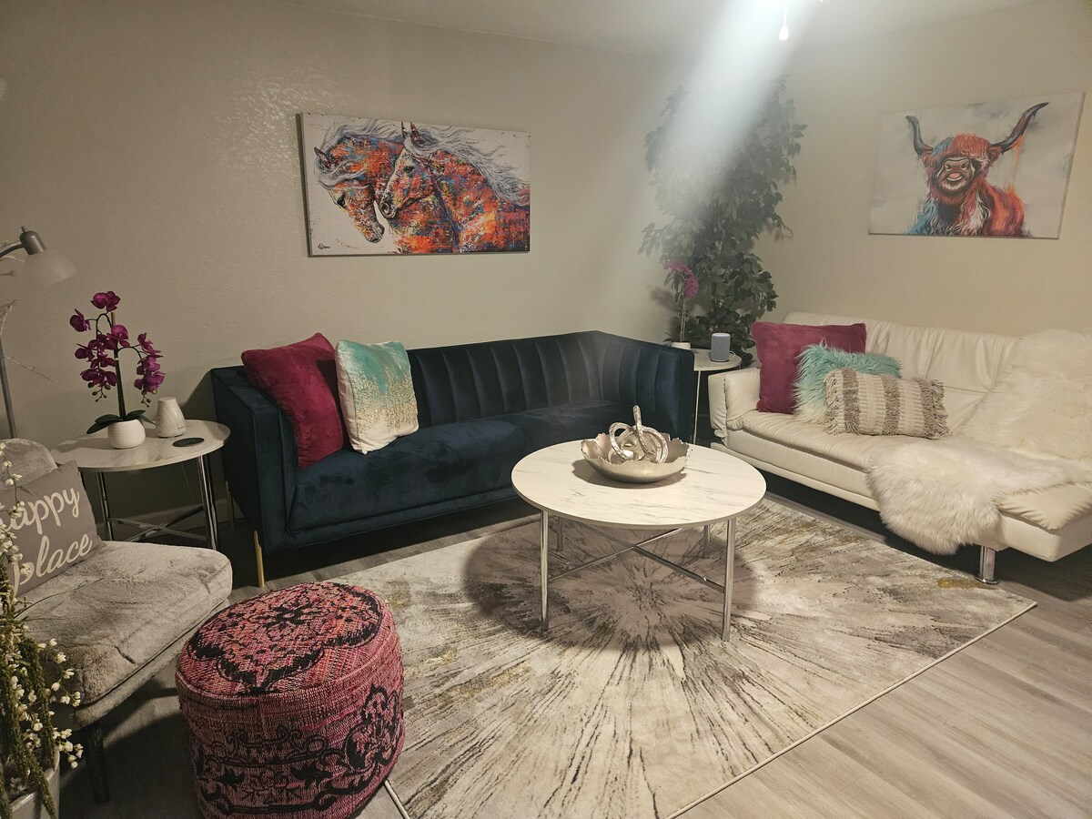 3900 Rosemary Drive is a pet friendly house with parking for 2 cars. Relax & enjoy your own private get away, outside patio area, tiki bar, sun loungers & hot tub. The open plan apartment has an 80” Peacock enabled TV,. Enjoy Netflix, Amazon Prime or other subscriptions that you have by entering your home’s password & pin information. In the lounge area there’s a 2 seater theatre style adjustable settee & a small dining table/ working area with Wi-Fi access and a fully equipped kitchen.