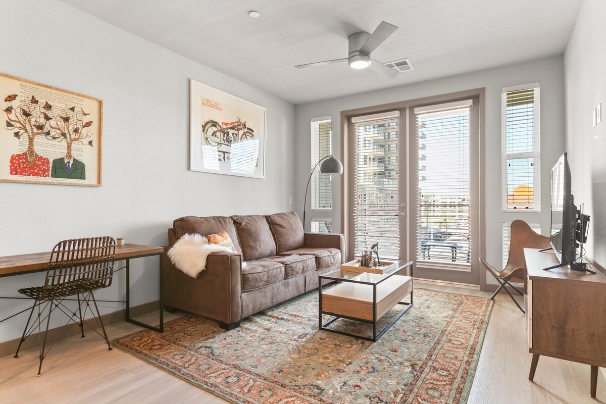 Your spacious two-bedroom apartment features a king bed, versatile second bedroom, and fully equipped kitchen. Enjoy HDTVs in every room and included WiFi! Close to Roosevelt Row and 10 minutes from Sky Harbor Airport. 🌵 Experience urban excitement and resort-style comfort at AVE Phoenix Terra, with our dedicated service team available 7 days a week! 🏆. Unwind at our rooftop pool with panoramic views, work remotely in our business center, or stay active in our 24/7 fitness facility.