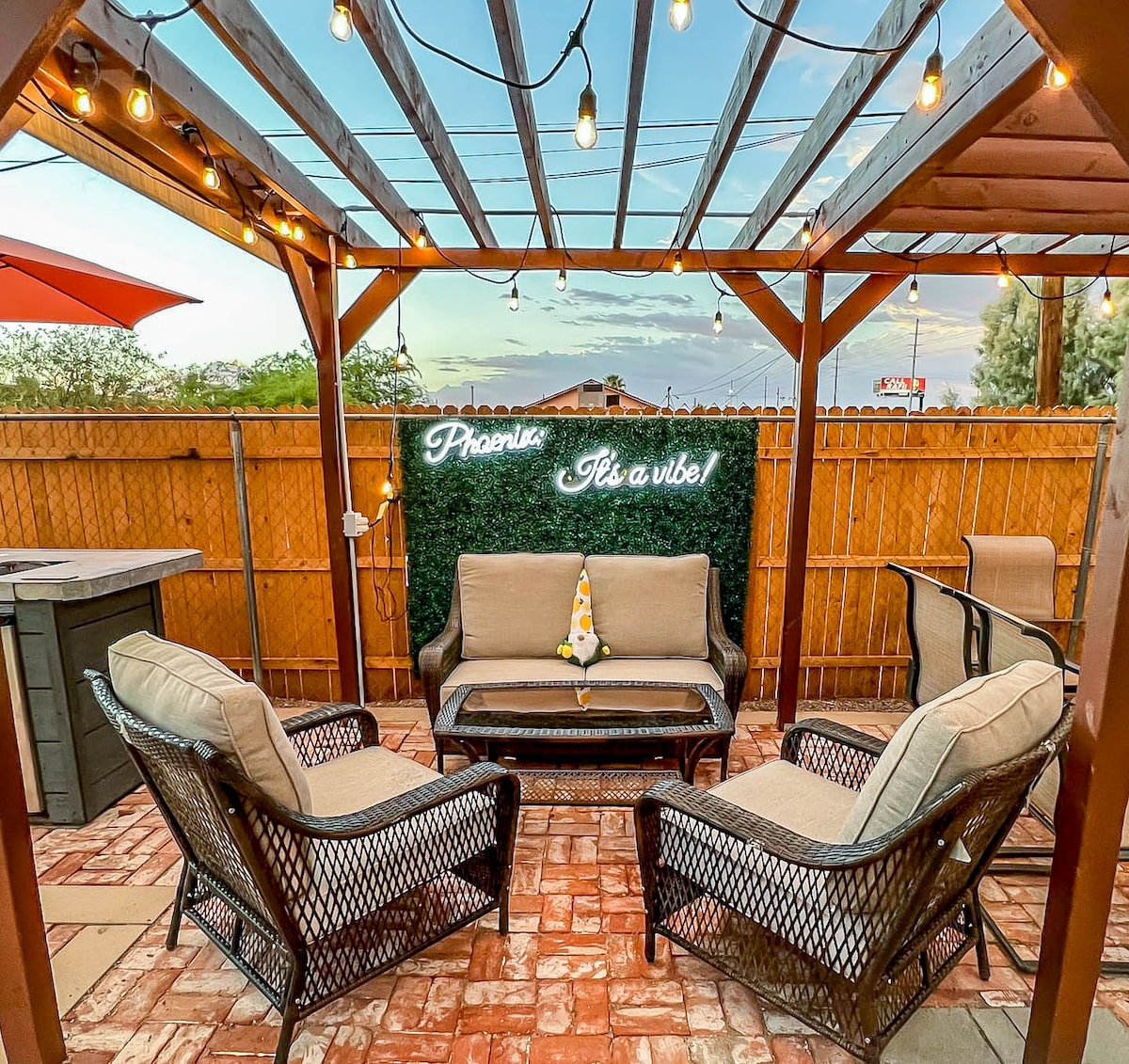 歡迎來到您最喜愛的DT Phoenix Airbnb。 這個精心策劃的小屋不惜一切代價。從高天花板和地鐵瓷磚浴室;到Nespresso咖啡機、Marshall藍牙喇叭和兩臺配備串流服務的智慧電視等高級設備,我們都能為您提供。每間客房都非常注重細節,確保每位房客都感到舒適。在高級室內裝潢、風景如畫的後院和中心位置之間,我們努力超越期望。 雖然此房源有自己的獨立入口和庭院,配備您所需的一切,但我隨時都可以提供服務。 我住在房源的主屋,隨時都可以聯絡到我。 步行即可抵達餐廳、當地啤酒廠和市集商店,距離輕軌站半英里,可探索更遠的地方。開車5分鐘即可抵達天港機場和市中心,距離阿卡迪亞、斯科茨代爾和坦佩僅有幾分鐘路程。 在該地區四處走走的最佳交通選擇是使用共乘應用程式、開車或使用前往山谷大部分地方的輕軌服務。