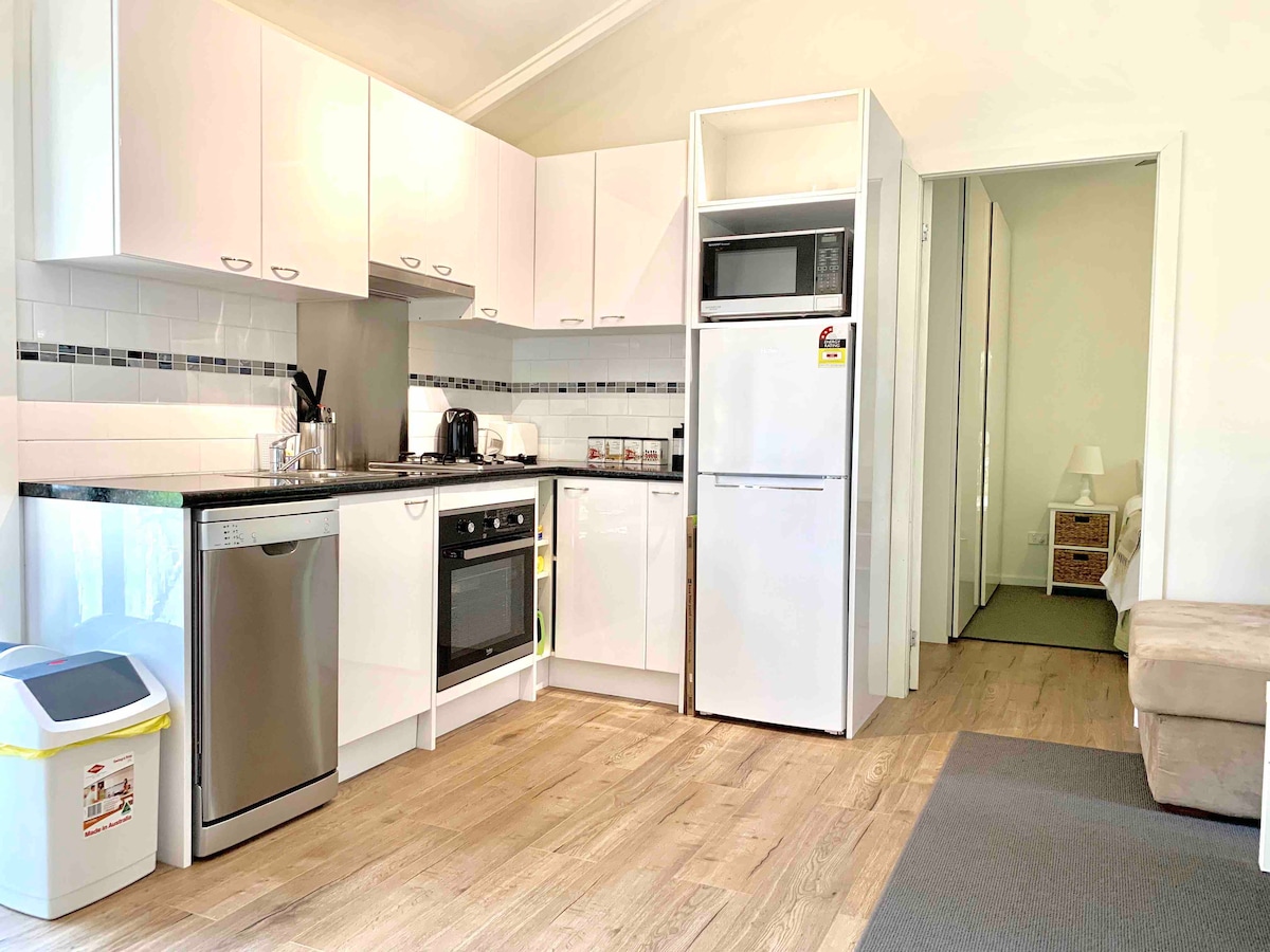 現代化的祖母公寓,設有獨立入口,位於查茨伍德西部。配備全套設施,配備廚房,配備爐台、微波爐、烤箱和冰箱。 房客可以使用電視和高速網路。臥室有套房,非常舒適,可供1或2位成人入住。在平靜的環境中放鬆身心。 開車前往查茨伍德中央商業區僅需5分鐘,步行即可抵達公園、叢林步道、巴士站和便利商店。