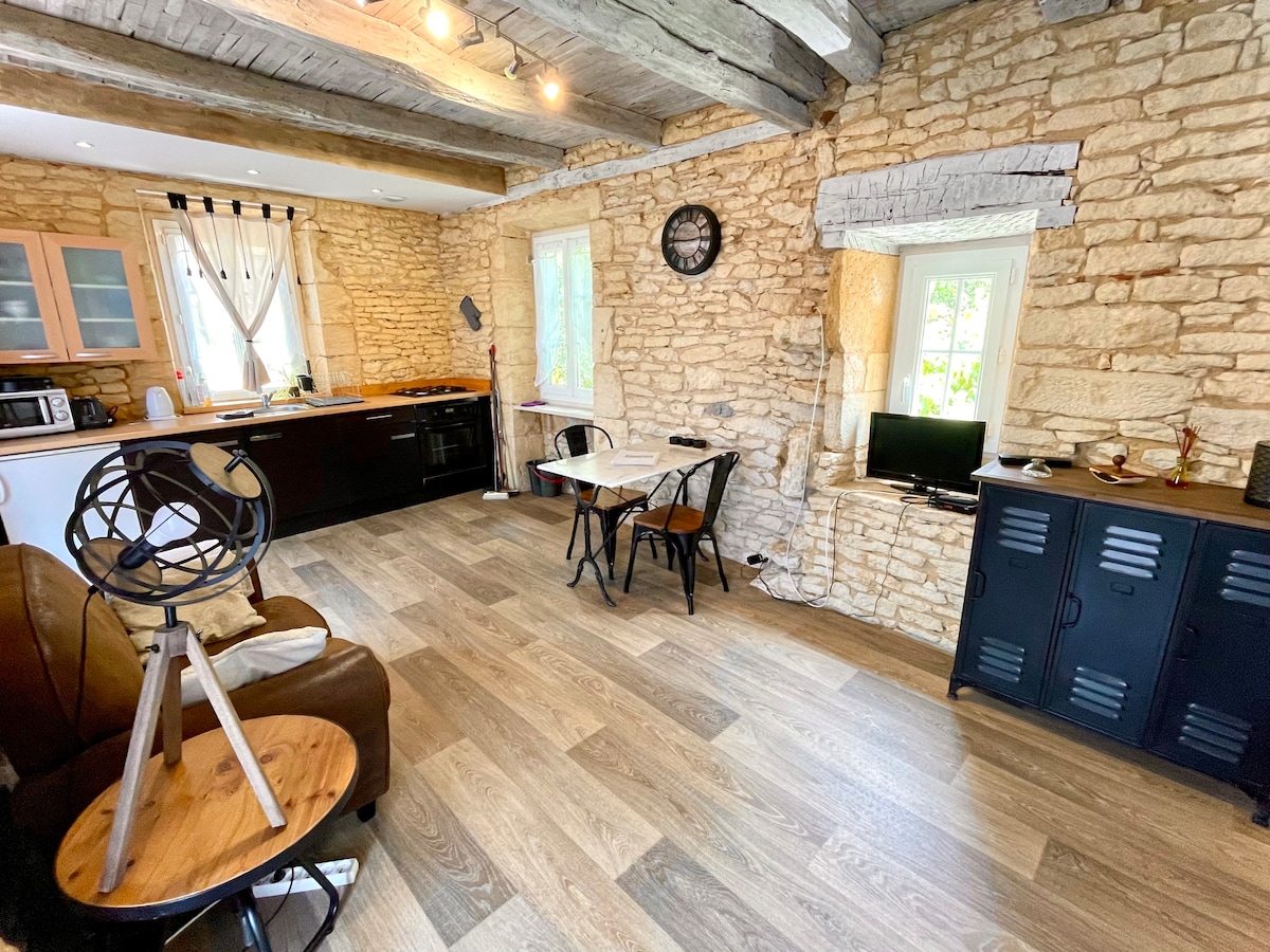 F2公寓(38平方米),可容納2人,位於佩里戈爾黑色地區,Terrasson lavilledieu的歷史街區。景觀優美。安靜的住宿,位於修復好的房屋內。您可以獨立生活。停車場就在附近。一切都可以步行。 許多旅遊景點:夢幻花園、教堂和城牆、水閘、石棺。手工藝品商店……周圍有漂亮的村莊可供參觀……再往前走一點,有蒙蒂尼亞克、薩爾拉、羅卡馬杜爾……在科雷茲省,有紅色科隆格、蒂雷訥、東澤納克。