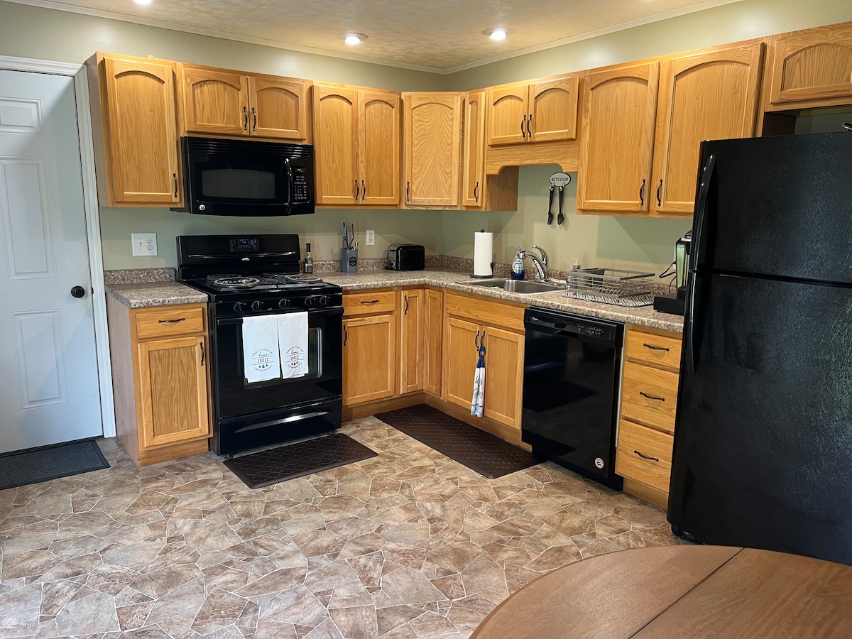 我們的房源位於Rte 414,距離康寧或沃特金斯格倫10英里。 美麗的後院可供營火(木材)、日光浴和玩遊戲。 探索通往鱒魚溪流的小溪床。參觀農場的山羊。3/25出生的孩子,從停車場到房子有一個斜坡。 兩臺電視已連接,方便您使用。 停車位在414號外,有足夠的空間可停放3輛車。 這間改造後的房源配有硬木地板、定制廚房櫥櫃和花崗岩檯面。