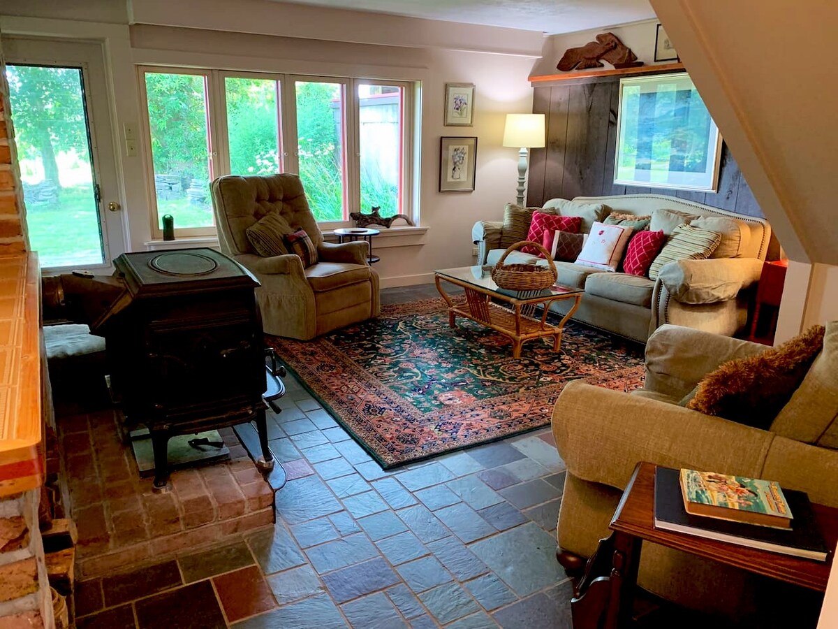 度假屋,僻靜的度假勝地,但靠近城鎮。 這間舒適的小木屋具有質樸的風格、裝飾和最近的更新。 私人設在2英畝的樹林中,靠近城鎮。2個石製壁爐、室內按摩浴池、2 1/2 BA、3-4 BR和7人室外按摩浴池。 極佳的WiFi、廚房和餐廳。 野餐、烤肉和火坑。 秋天的落葉很棒,靠近滑雪、靠近徒步旅行、船舶發射。 設備齊全,只需帶上自己!!願意接待房客-請詢問!