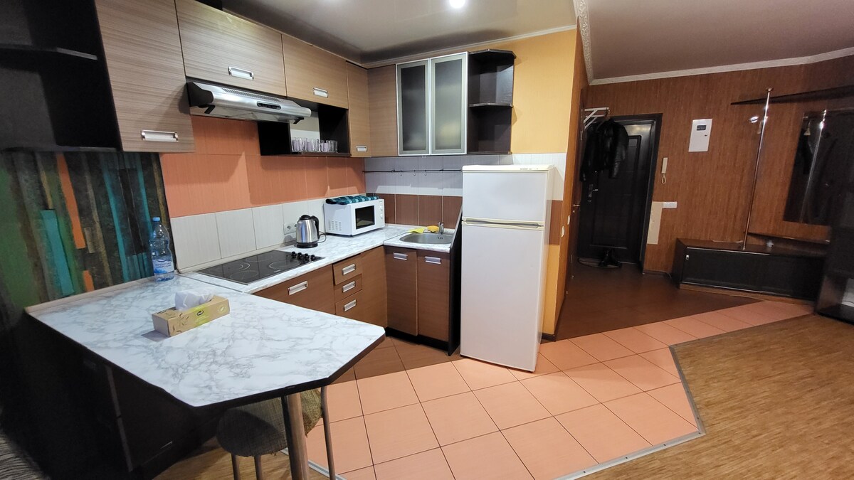 很棒的舒適單人公寓。 Mytnica微型區。附近有餐廳「Faro」、「Storis」。 美麗的Cherkassis海濱。 步行10分鐘即可抵達市中心。 附近有ATB商店「Velyka Kishenya」公共交通站、銀行、餐廳、洗車場、第尼普羅廣場購物中心。 公寓配有Wi-Fi、有線電視、空調、空調、優質碗碟、優質碗碟、優質碗碟、優質碗碟、乾淨的牀單、浴室配件。 我們正在發送報告文件。