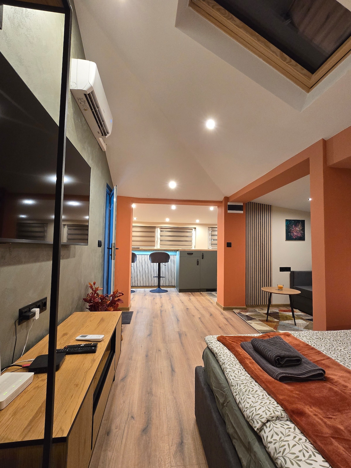 Welcome to my boutique attic studio at the foot of Vitosha. Bright, minimalist and peaceful space with beautiful mountain and city views. Located in a quiet, safe area—perfect for evening walks and relaxing away from the center. The bed features a Magniflex mattress and pillows for excellent rest. The studio has a fully equipped kitchen, fast Wi-Fi and a cozy work/dining area. Clean, calm and with easy access to both the mountain and the city.