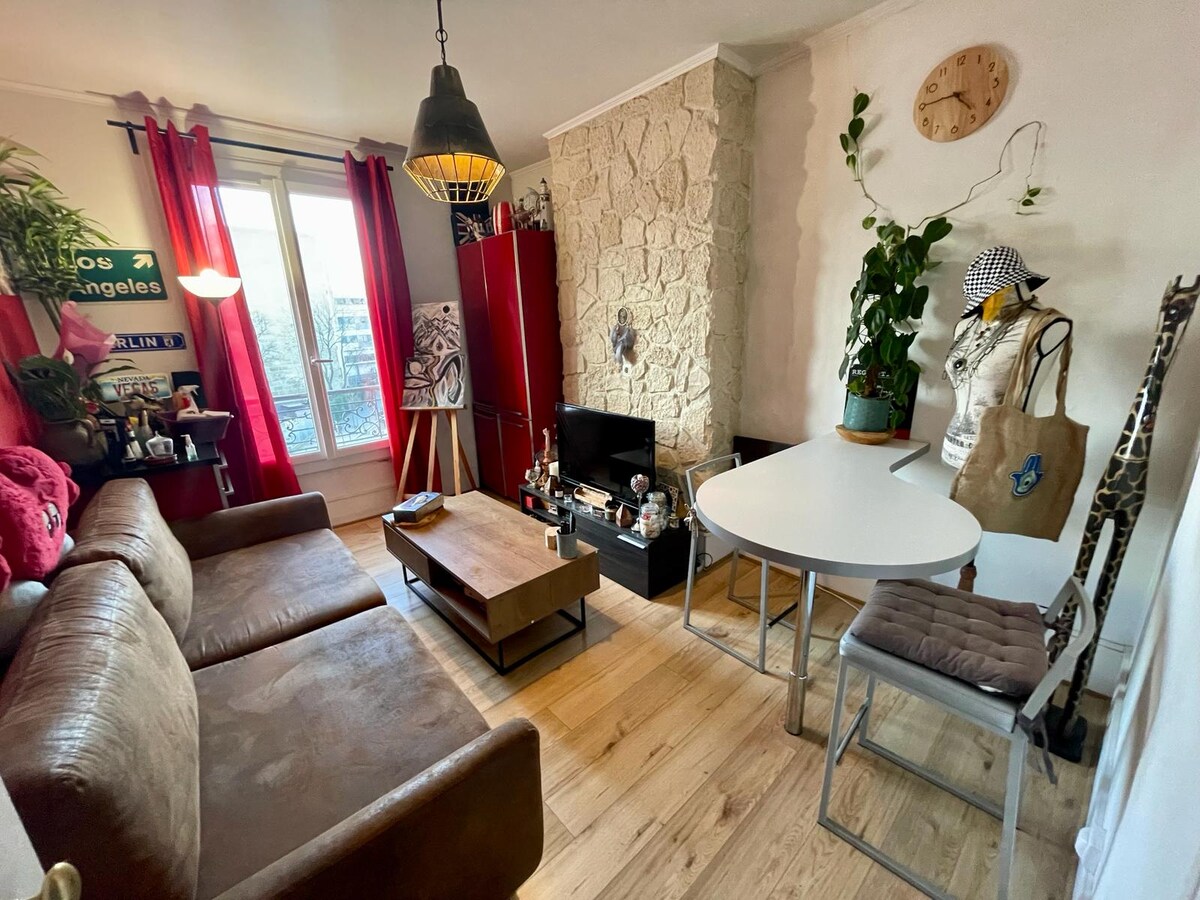 入住設備齊全的迷人公寓,非常靠近巴黎,可供長期住宿。 與巴黎⚡直接連接。步行3分鐘即可抵達Tram T9 ,步行13分鐘即可抵達地鐵7號線。 在溫馨的氛圍中,全天享受舒緩的光線。 花園的寧靜景觀和城市的風景。 廚房配有烹飪鍋、鍋和必要的餐具。 街上有🚗免費泊車位(非常安靜的社區)。 附近有法國麵包店、超市和餐廳。 如果您有任何問題,請發送訊息給我。