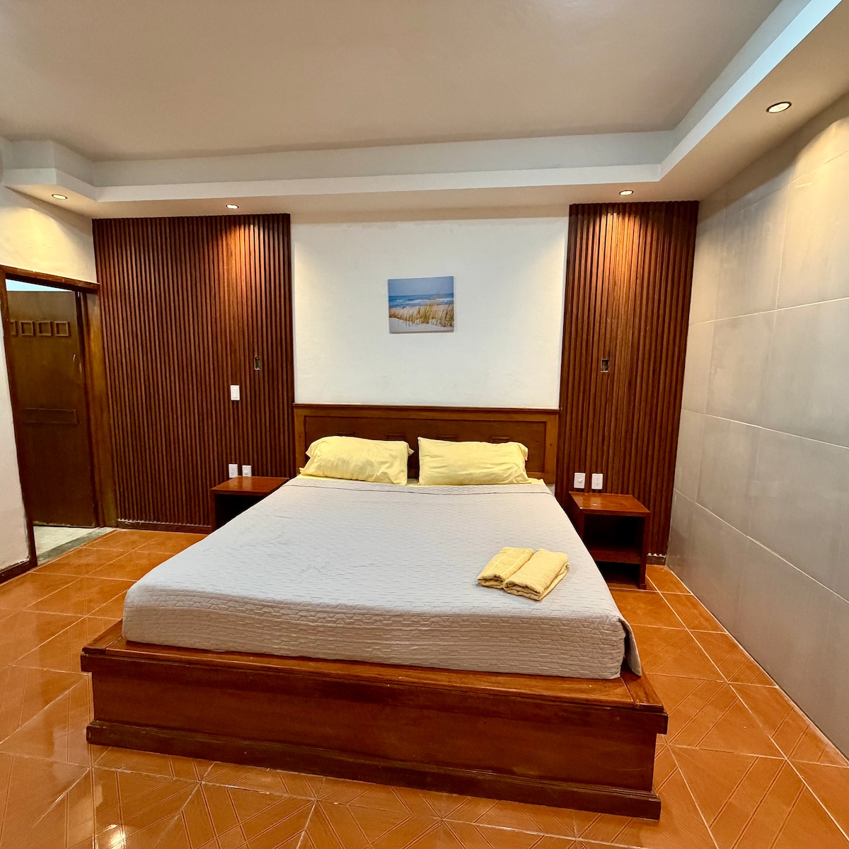 Disfruta de una estancia cómoda y sofisticada en esta hermosa habitación con cama king size, diseñada con un estilo moderno y acogedor. Su combinación de tonos cálidos y frescos crea un ambiente perfecto para el descanso. Además, cuenta con amplios ventanales que ofrecen una iluminación natural excepcional y acceso a una terraza privada con vistas panorámicas espectaculares. NO CONTAMOS CON ELEVADOR. Tenemos un pequeño garaje para tu coche (sujeto a disponibilidad)
