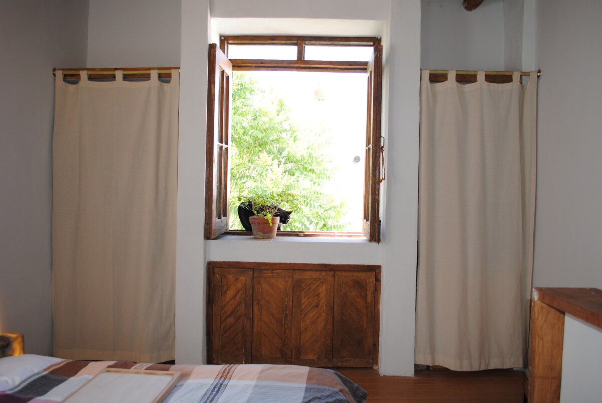 美麗的閣樓式套房,分為2層,雙倍高度、特大床、全套浴室和小廚房,非常適合長期住宿。 包早餐。 它有電視、Wi-Fi和基本設施,讓您住得愉快。 非常適合尋找寬敞且設備齊全的空間的旅人。 一般廚房、中央露臺和露臺是我們的訪客非常喜歡的公共區域。