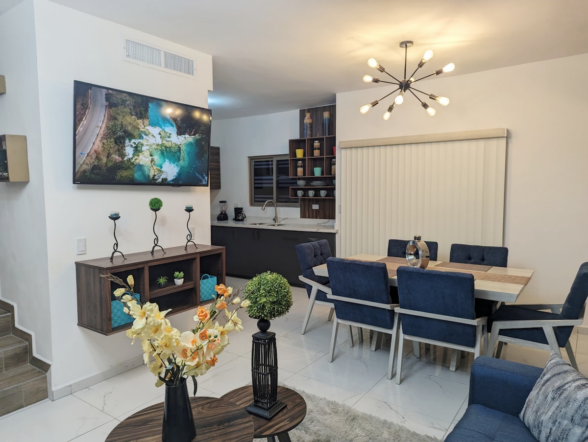 這是一個擁有波西米亞風格裝飾的房源,融合了現代和溫馨。 在我的房子裡,您將擁有與家人或工作一起享受幾天所需的所有舒適性。 靠近Plaza Galerías、1區、Boulevard Ortiz Mena、超市、商業地點、醫院和La Cantera路。