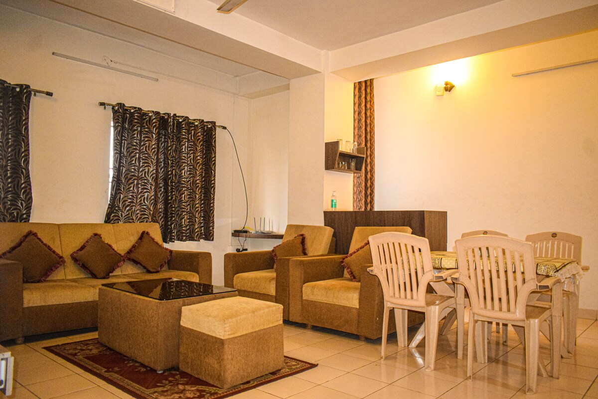 Navile apartments features fully furnished rooms, ensuring a cozy and relaxing atmosphere. Each apartment includes comfortable bedrooms, a spacious living area, a fully equipped kitchen,and clean bathrooms. Amenities such as, Wi-Fi connectivity, television, are provided. Being located in the center of the city, you'll have easy access to popular tourist spots like Mullayanagiri Peak, Baba Budangiri, and Bhadra Wildlife Sanctuary.Forget your worries in this spacious and serene space.