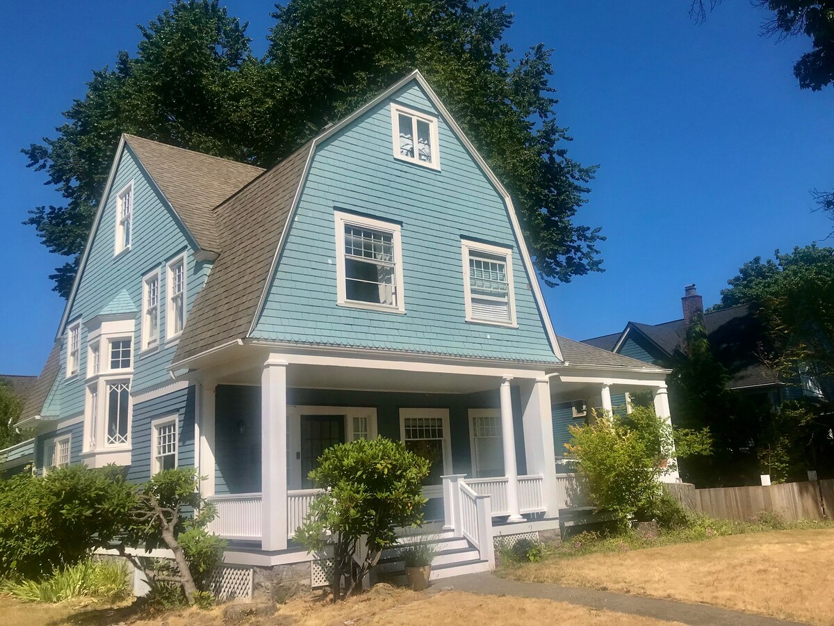 可愛的單人臥室公寓,位於美麗的北塔科馬( North Tacoma )的二樓,荷蘭殖民地住宅! 主套房配有加大雙人牀和法式門,可欣賞 Rainier。寬敞的客廳和用餐區域,配有咖啡吧、桌椅、48英寸電視、可折疊成額外的雙人牀的沙發等! 小廚房包括微波爐、烤麵包機、電熱爐、冰箱和所有必需品! 享受常見的遊戲/DVD衣櫃和咖啡吧!