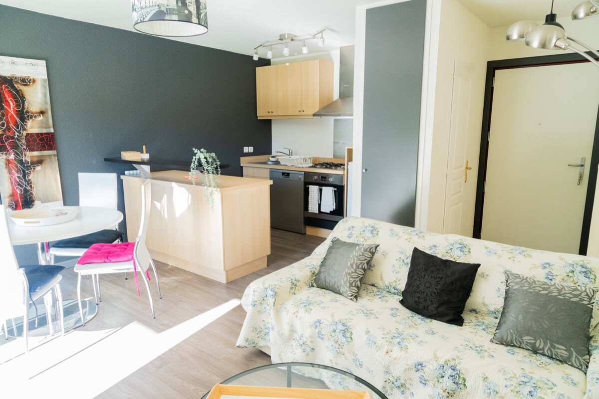49 平方公尺的 Coquet T2,設備齊全,提供所有舒適和必要的設施,無論是商務還是休閒,都能讓您住得愉快。拉巴爾姆德西林吉 (La Balme de Sillingy) 距離安錫 (Annecy) 「阿爾卑斯山的威尼斯」12 公里,距離冬季運動度假村不到 40 公里,靠近大埃帕尼 (Grand Épagny) 區域,靠近日內瓦。 您將置身於寧靜的鄉村,擁有保險的停車位,以及拉巴爾姆德西蘭吉 (la Balme de Sillingy) 的所有便利設施。