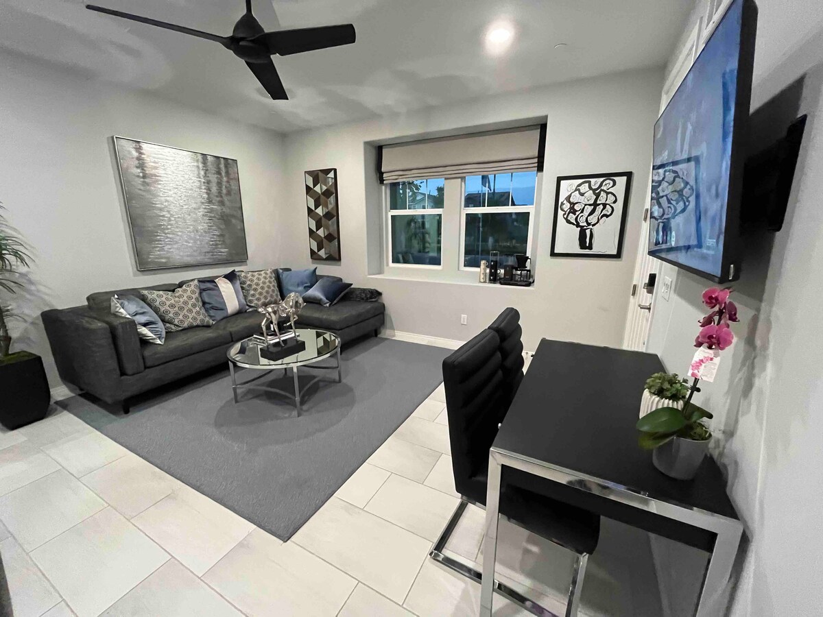 歡迎來到您的另一個家! 我們新建的單間公寓是一間配有1.8米寬雙人牀的1間臥室、設備齊全的廚房,配有不鏽鋼家電、高速Wi-Fi和舒適的寢具,非常適合尋找高品質、舒適和中心位置住宿的專業人士和成人。 距離安大略市中心、安大略機場、會議中心5-15分鐘路程,距離海灘或山脈45分鐘路程。 無論您是出於商務或休閒目的來到這裡,輕鬆愉快的住宿體驗正等著您!