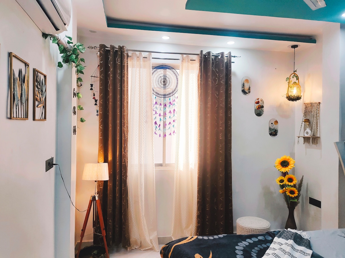 歡迎來到我們迷人的德裏度假勝地! 配備投影機,透過超級舒適的躺椅(就像朋友一樣)沉浸在電影魔術中,非常適合與朋友舉辦IPL比賽或度過舒適的約會之夜。 我們以波西米亞風格的室內裝潢營造出逃生感,在繁華的城市中提供了一個寧靜的天堂。 位於德裏市中心,加入我們的親密聚會和有趣的遊戲之夜,創造一生難忘的回憶。