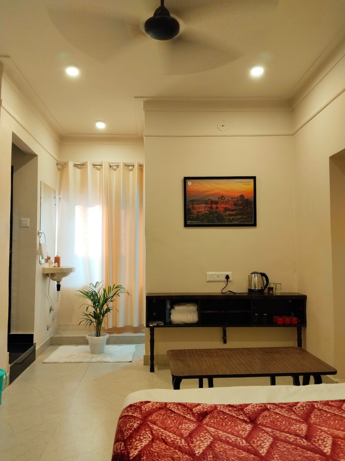 Wake up to a stunning sunrise view of Chittorgarh Fort from our centrally located stay. Enjoy easy access to top attractions while relaxing in a peaceful, comfortable space. We offer a complimentary Rajasthani lunch daily, featuring authentic local flavors like dal baati churma and gatte ki sabzi. Unwind in a cozy corner with a recliner and leisure setup.Perfect for couples, solo travelers, or families looking to explore Chittorgarh’s rich heritage.