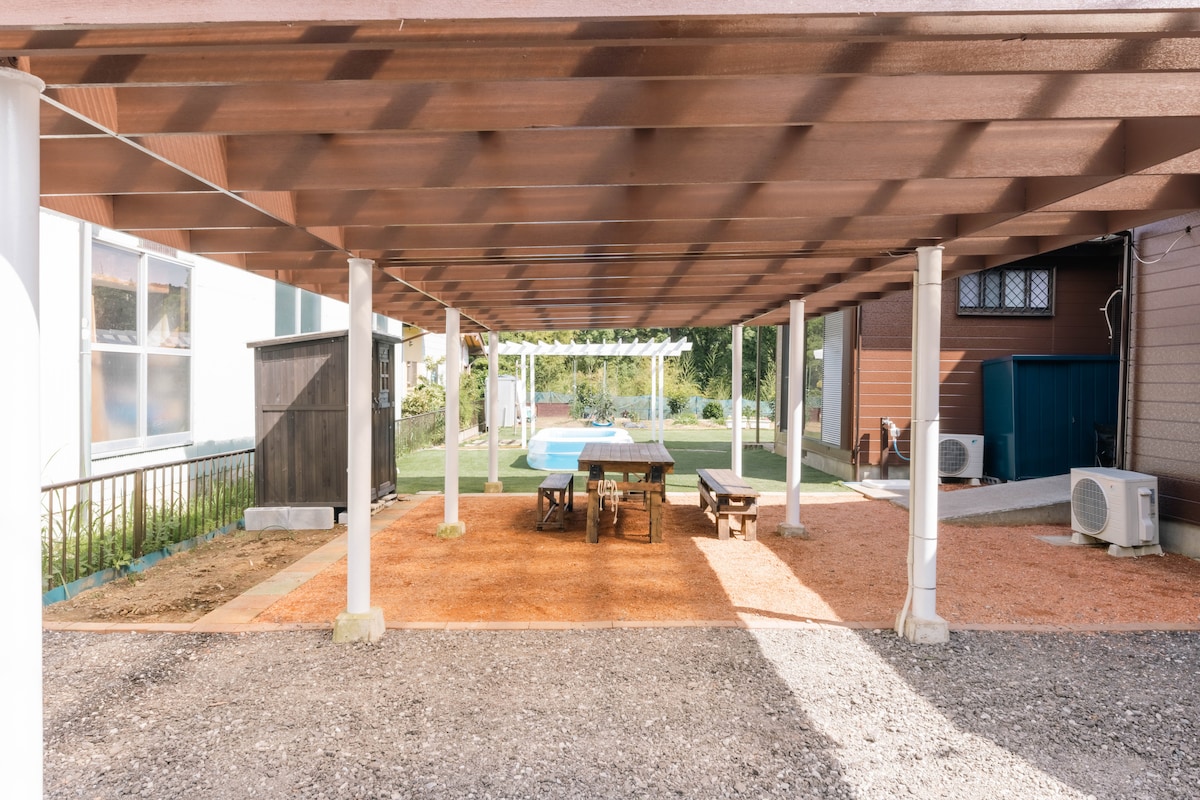 這間小屋位於自然豐富的長南町,距離市中心約一小時車程,是一間「可玩的私人小屋」,提供各種室內活動,如乒乓球、飛鏢和撲克,以及燒烤、營火、羽毛球和桑拿。 室內遊戲室是一個無論天氣如何都可以與家人和朋友一起玩樂的空間,乒乓球和飛鏢特別受許多客人歡迎。 除了在戶外享用燒烤外,我們也建議你在營火旁聊天。每晚免費提供五塊木柴,另外六塊木柴在當地以600日元出售(僅限PayPay )。 此外,電動桑拿溫度範圍為70至80度,讓您輕鬆享受「Totono」體驗,同時感受戶外空氣。 這是一個各年齡層都可以享受的環境。 小木屋可容納大型犬隻,你可以讓牠們在本店的狗狗活動場自由玩耍。 步行即可抵達家居中心和藥店,方便購買食物、燒烤用品和家居用品。 泊車位可供2-3輛車泊車,交通便利,距離Mobara Nagami Interchange約900米。 *簡易泳池僅在夏季開放