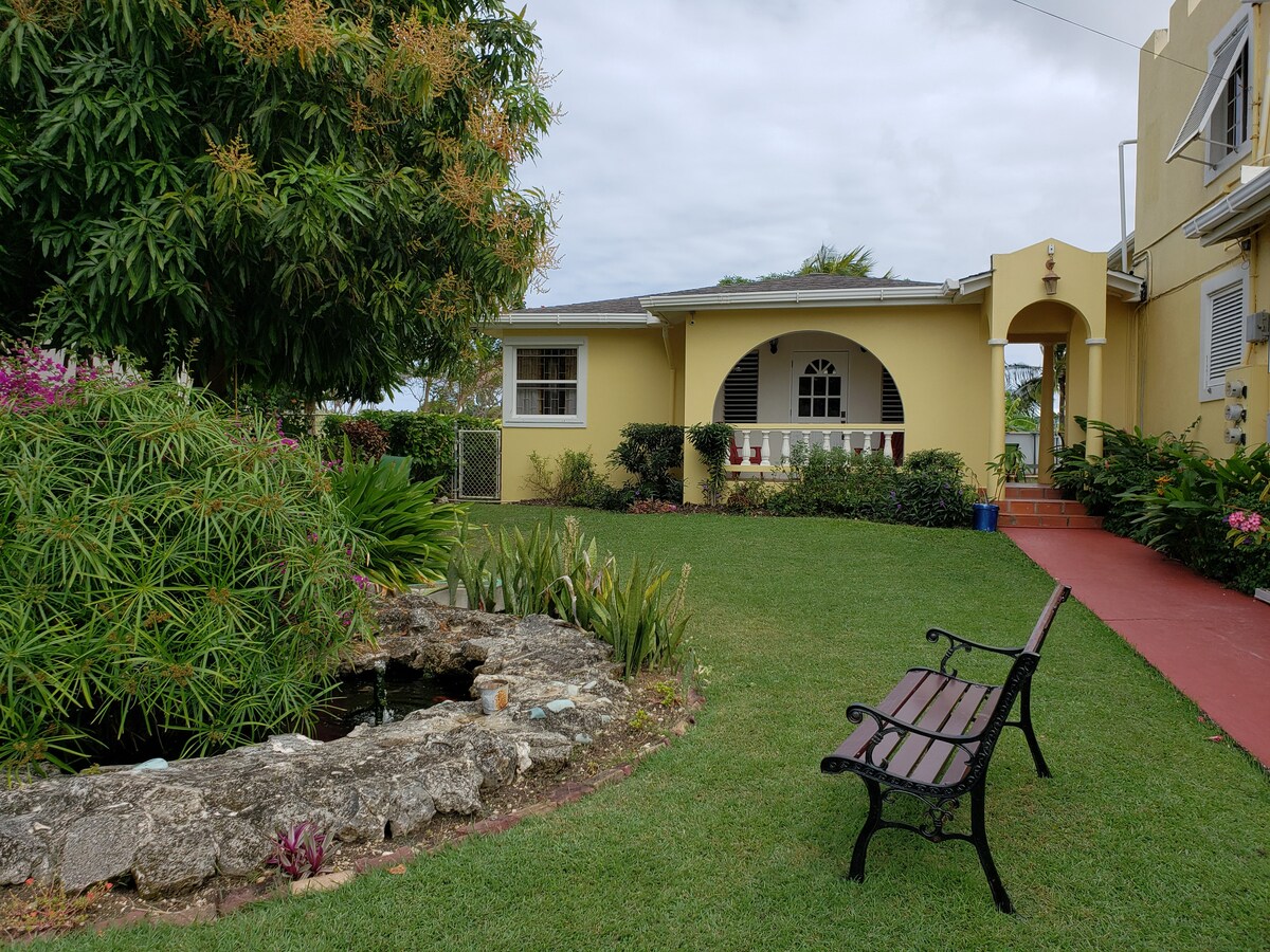 這是我們家後面的一間完全獨立的小屋,位於安靜的死胡同上,步行約一分鐘即可抵達「我們的」( Rockley/Accra )海灘。 有一間配有套房浴室的大臥室和一間較小的第二間臥室。 開放式設備齊全的廚房、用餐區域和客廳。 陽臺、小庭院和草坪。 步行即可輕鬆抵達銀行、醫生和藥店、運動酒吧、海灘酒吧、5家餐廳、便利店和2家超市。