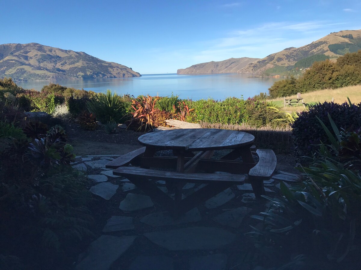 鄉村小屋坐落在Pigeon Bay。 獨特的時髦氛圍與藝術裝飾。 大床、木柴燃燒器、復古遊戲和書籍、桌椅。 小廚房,室外涼亭下有美麗的泉水和瓦斯爐。 戶外露台上的陽光沙發。 超時髦的廁所和寬敞的淋浴間,步行即可抵達茂密的草坪。 美麗的鄉村景觀。開車1分鐘即可抵達海洋。開車20分鐘即可抵達Akaroa。 沒有WiFi ,但Spark網絡的覆蓋率極佳,Vodafone的平均覆蓋率。