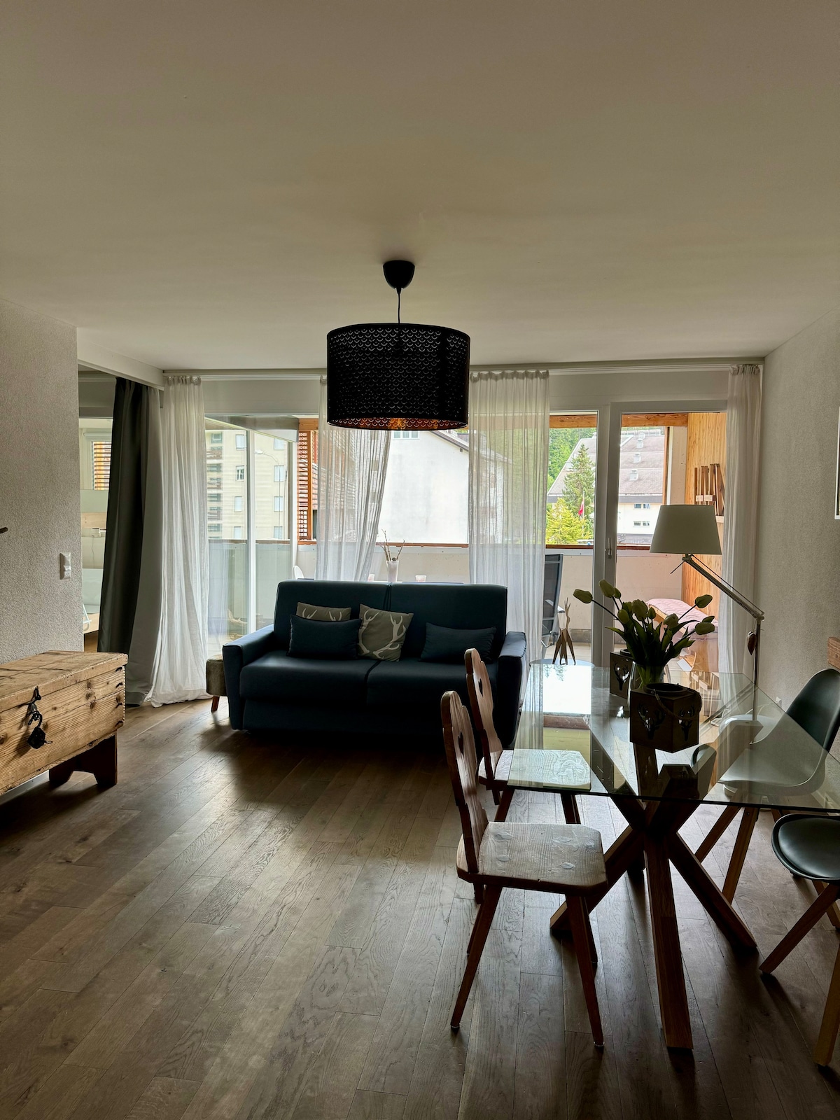 舒適、安靜的 3.5 間房公寓,坐落在大自然中,景觀獨特。公寓位於帕尼 (Pany) 郊外的一棟美麗房屋內。在這裡,您可以在山區的絕對寧靜中放鬆身心,真正放鬆身心。公寓有兩間獨立的臥室,非常適合家庭入住。提供WiFi,因此您可以在山區辦公。