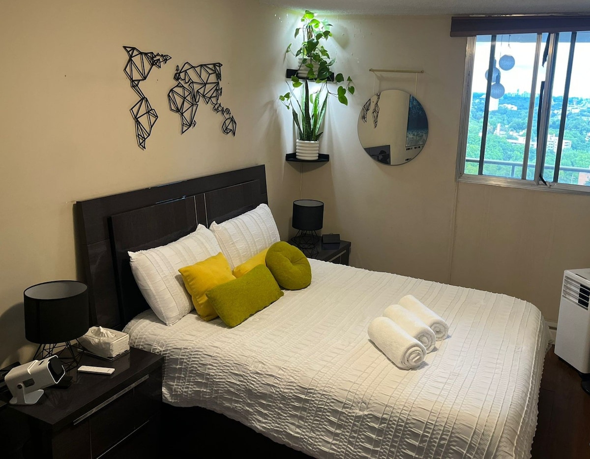 Welcome to our chic urban oasis in downtown Toronto, nestled next to the vibrant Yorkville district and prestigious University of Toronto. Enjoy the perfect blend of luxury and convenience in our stylishly furnished apartment, boasting stunning city views. Explore renowned shopping, dining, and cultural attractions just steps away. Our home sleeps 4 with a Sofa Bed and a plush Queen sized mattress in the bedroom.