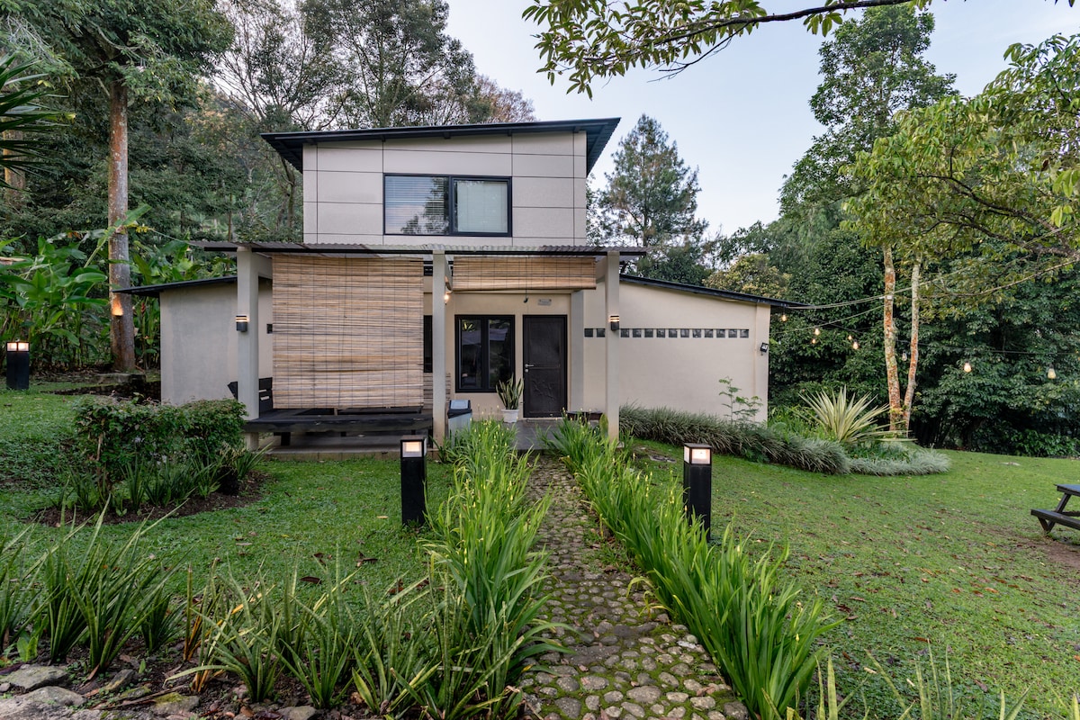 這棟僻靜的山間別墅讓您遠離雅加達。 2間臥室可供4位房客舒適入住,半開放式客廳可容納2位房客。 開放式設計讓您更接近大自然,空氣清新, 晴朗的日子裡的Salak。 非常適合在寧靜的自然環境中與親朋好友共度美好時光。
